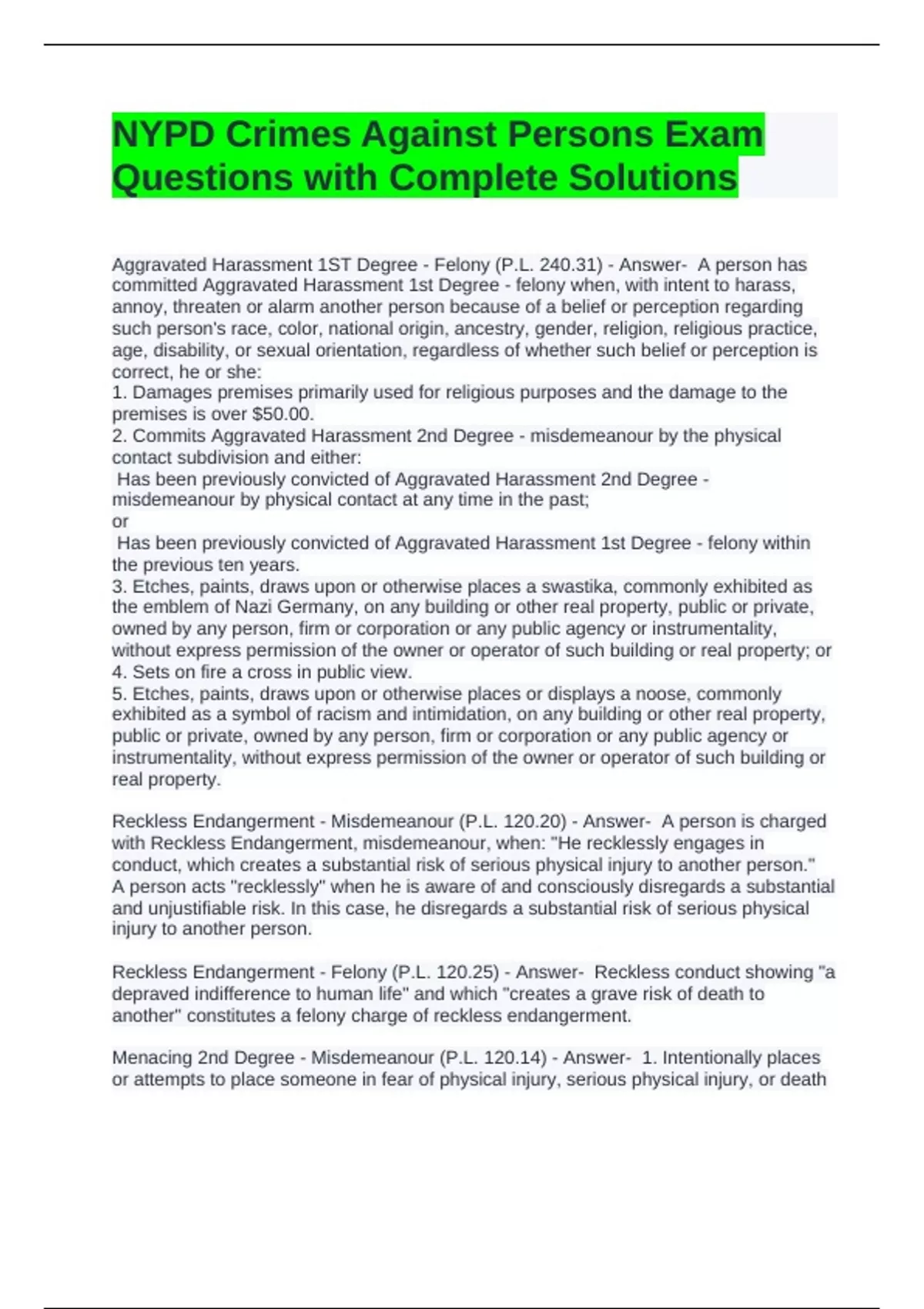 Aggravated Harassment 1ST Degree - Felony (P.L. 240.31) - Answer- A person has