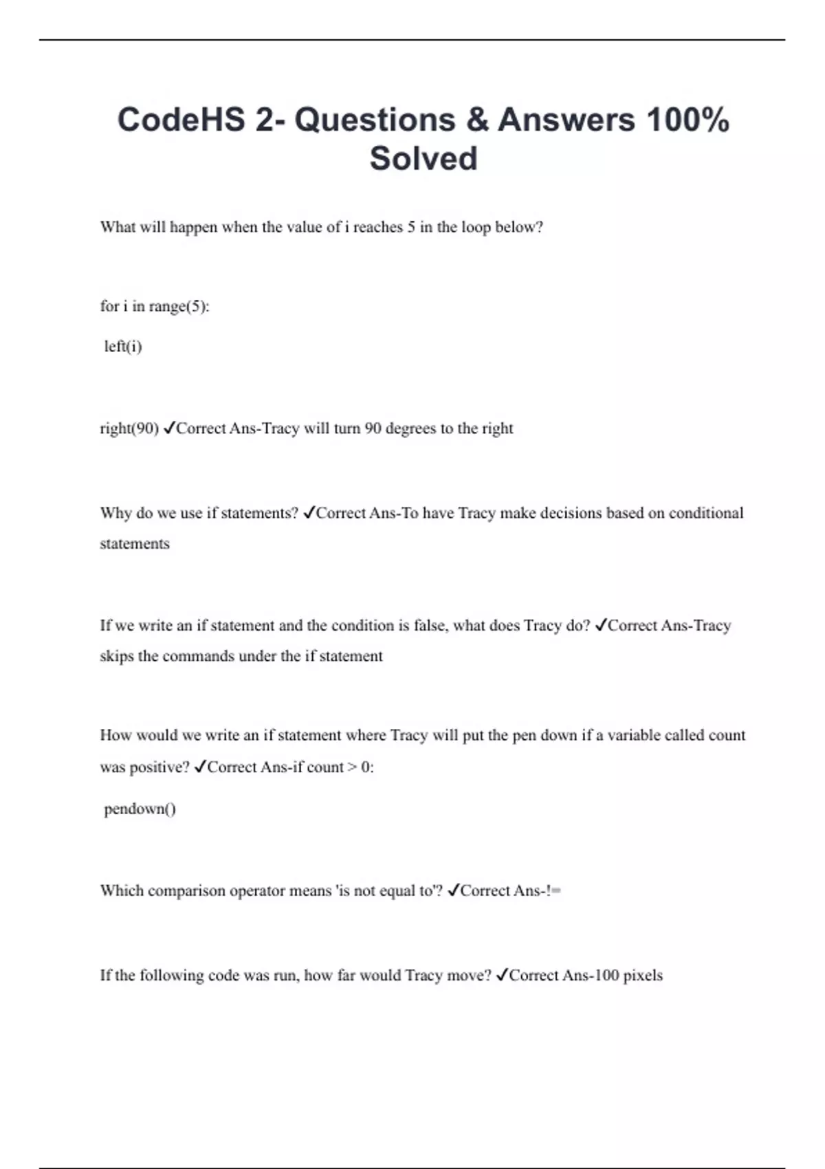 CodeHS 2- Questions & Answers 100% Solved