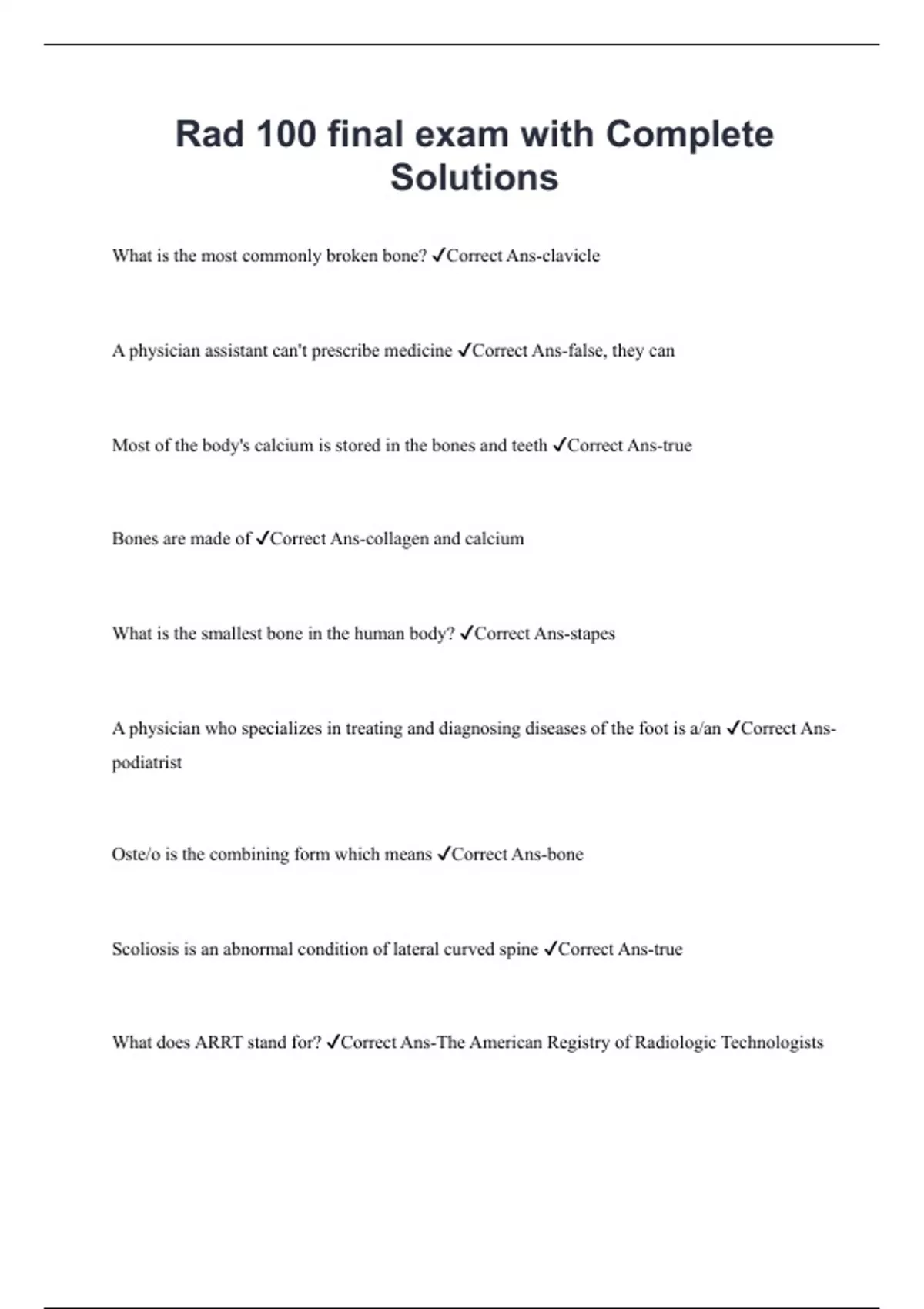 Rad 100 final exam with Complete Solutions