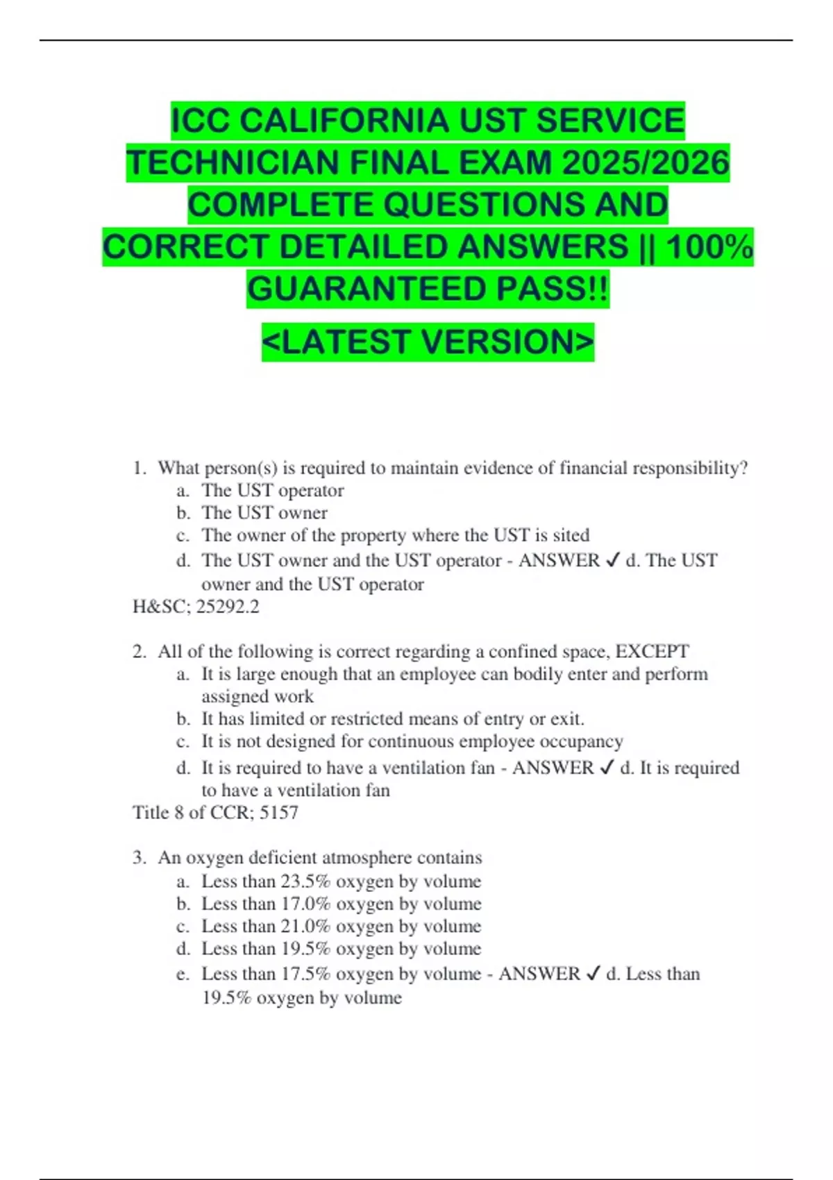 installed. - ANSWER ✔ a.) California Licensed Tank Tester
