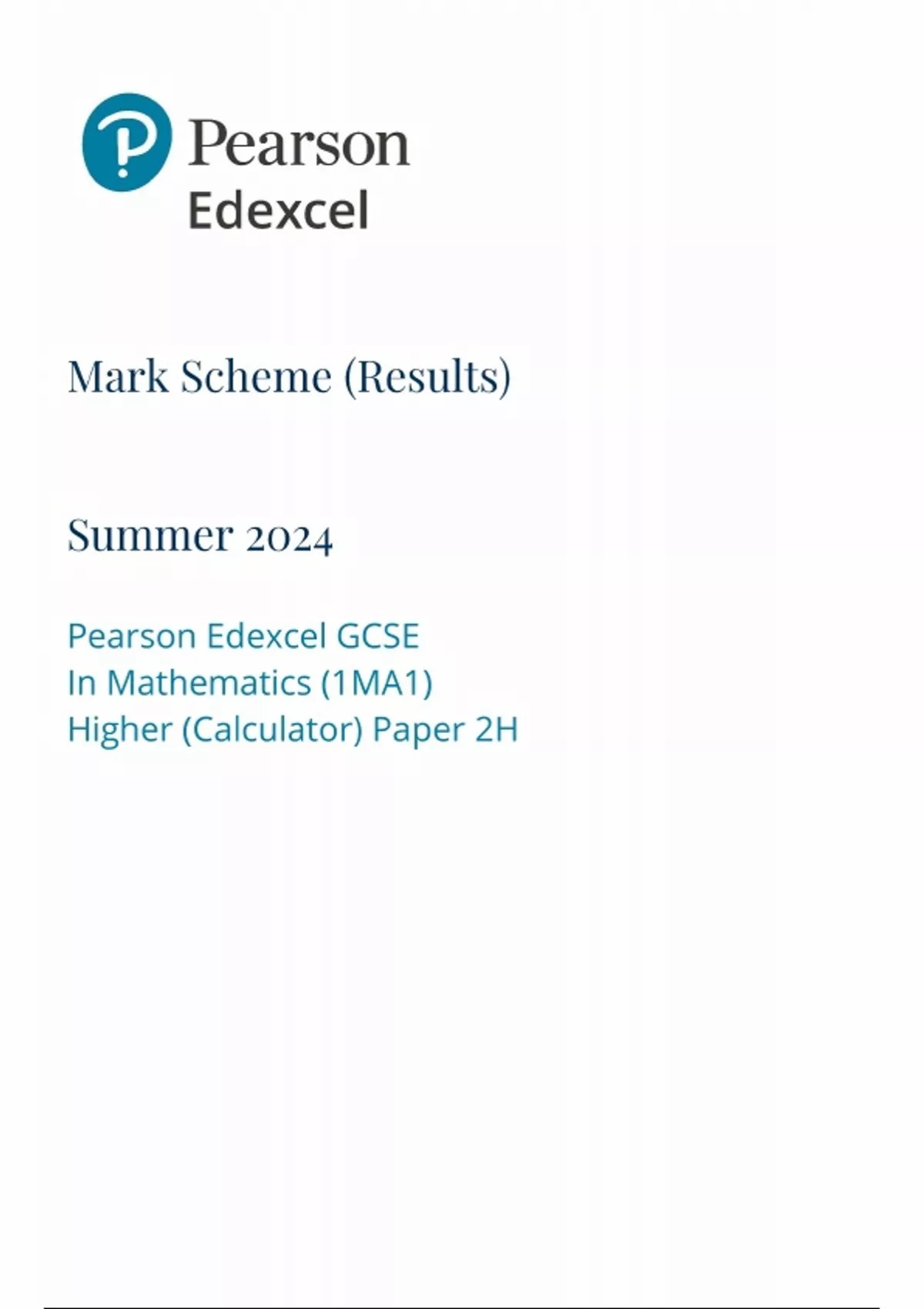 2024 Pearson Edexcel GCSE Mathematics Mark Scheme Paper 2 (1MA1/2H: Higher Tier)