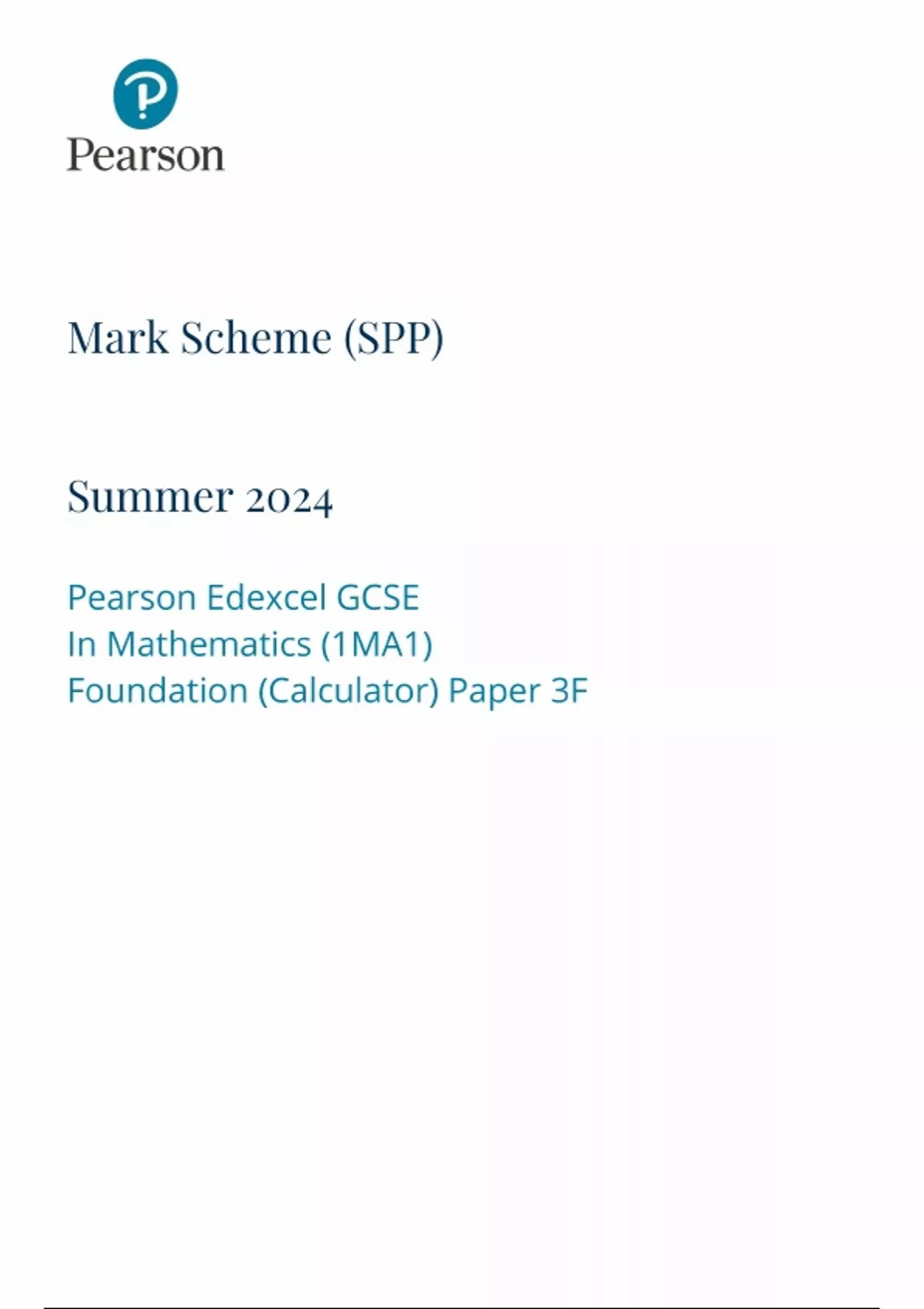 2024 Pearson Edexcel GCSE Mathematics Mark Scheme Paper 3 (1MA1 /3F: Foundation Tier)