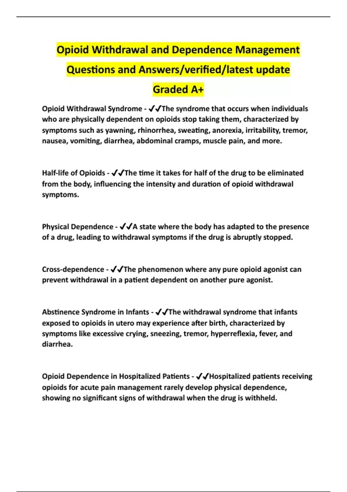 Opioid Withdrawal Syndrome - ✔✔The syndrome that occurs when individuals