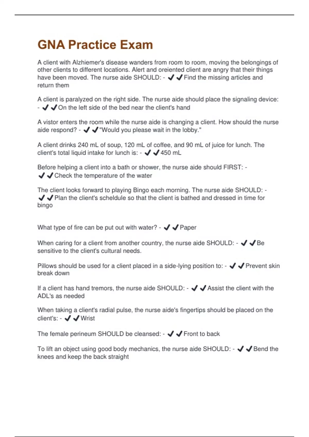 Nurse aides can provide a client with a sense of security by: - ✔️✔️explaining all
