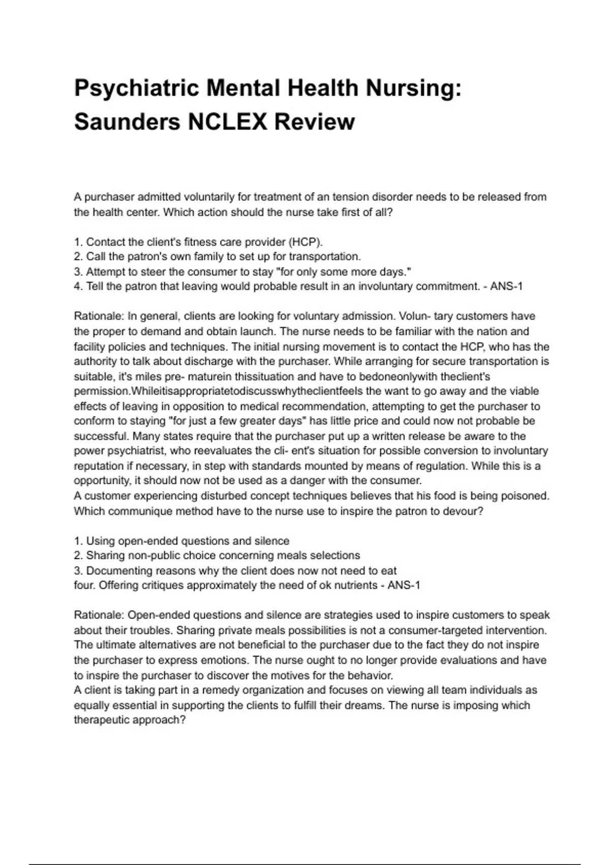 A purchaser admitted voluntarily for treatment of an tension disorder needs to be released from
