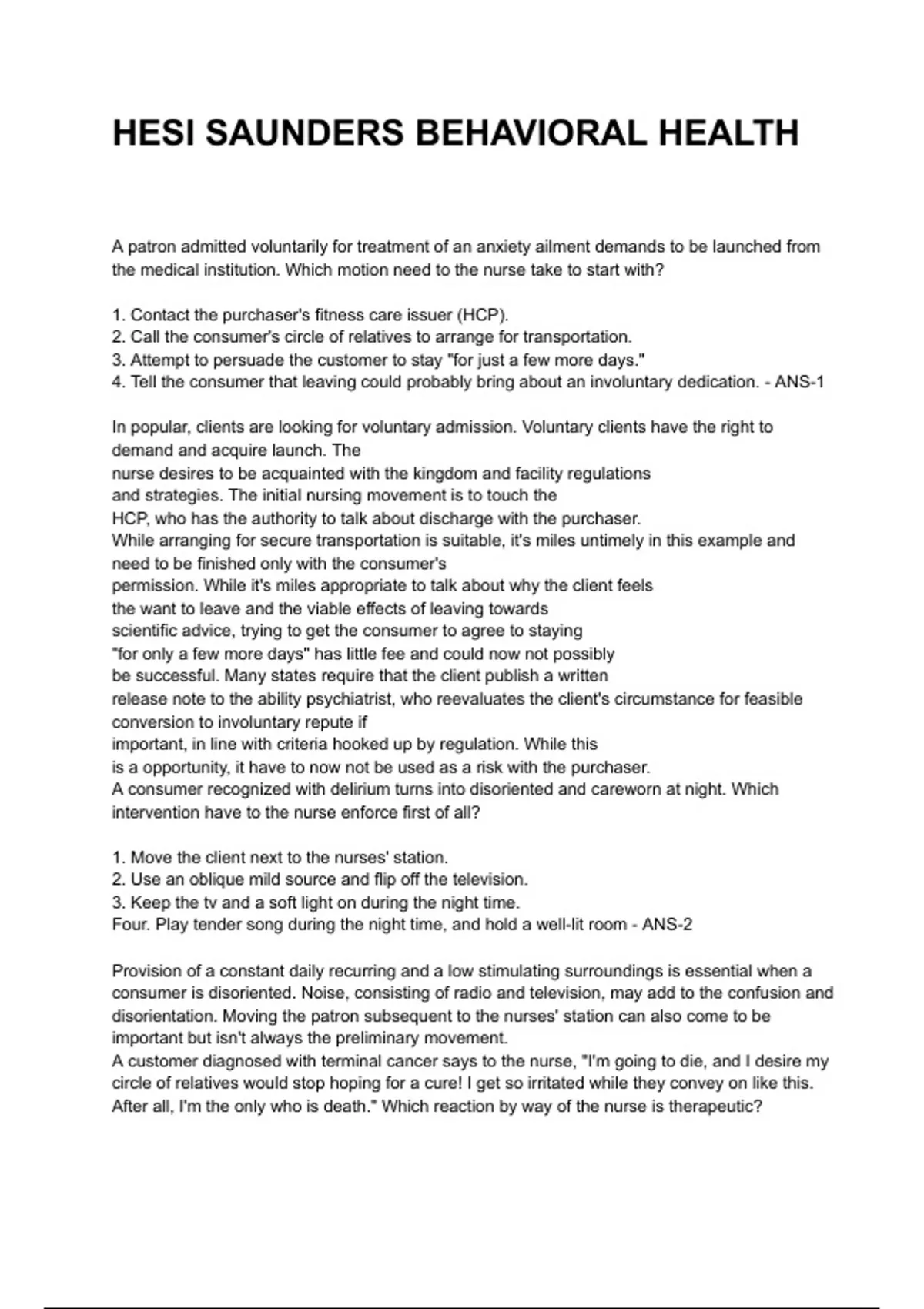 A patron admitted voluntarily for treatment of an anxiety ailment demands to be launched from