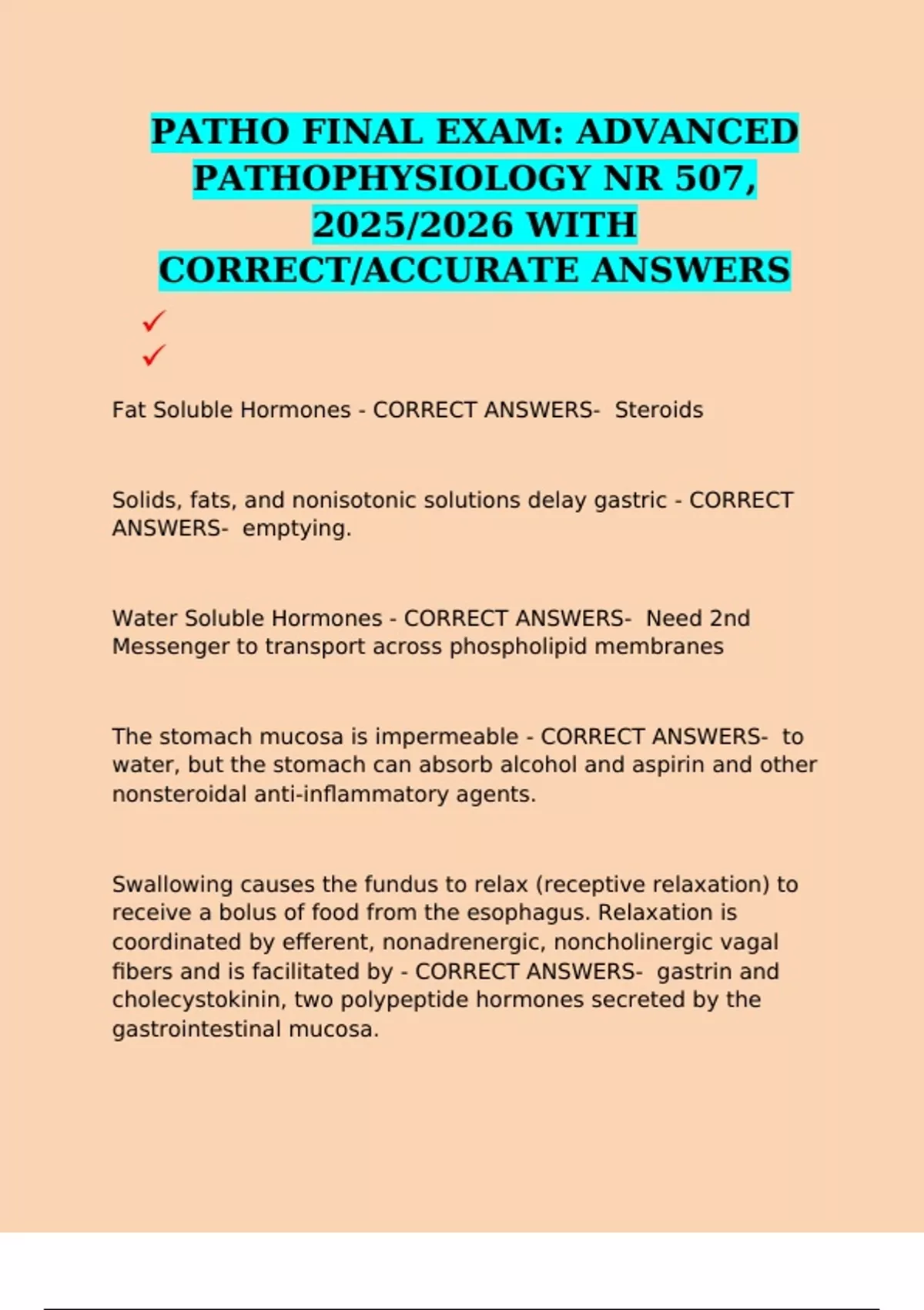 Water Soluble Hormones - CORRECT ANSWERS- Need 2nd
