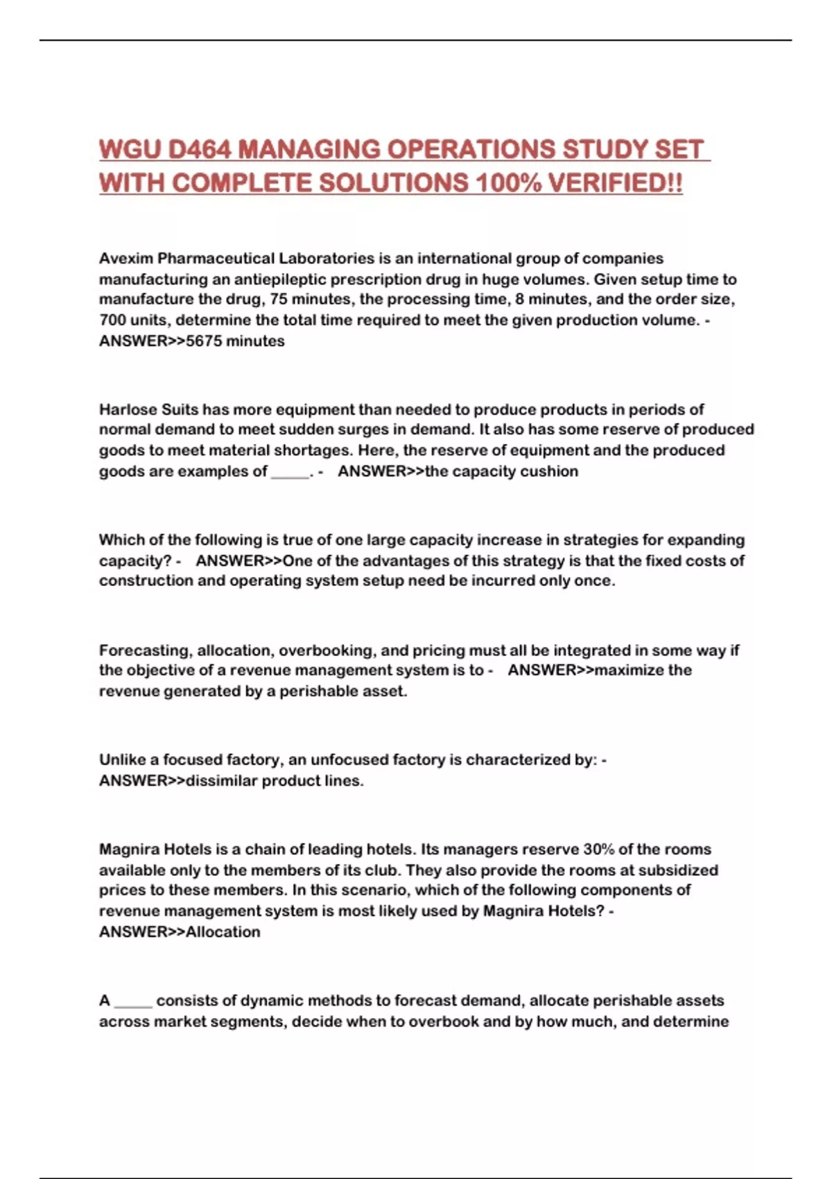 WGU D464 MANAGING OPERATIONS STUDY SET WITH COMPLETE SOLUTIONS 100% VERIFIED!!...