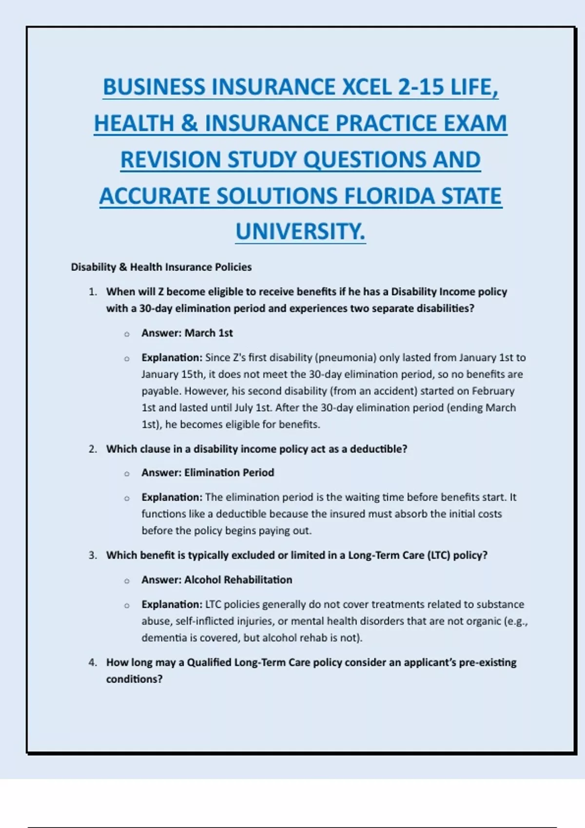 o Explanation: The elimination period is the waiting time before benefits start. It