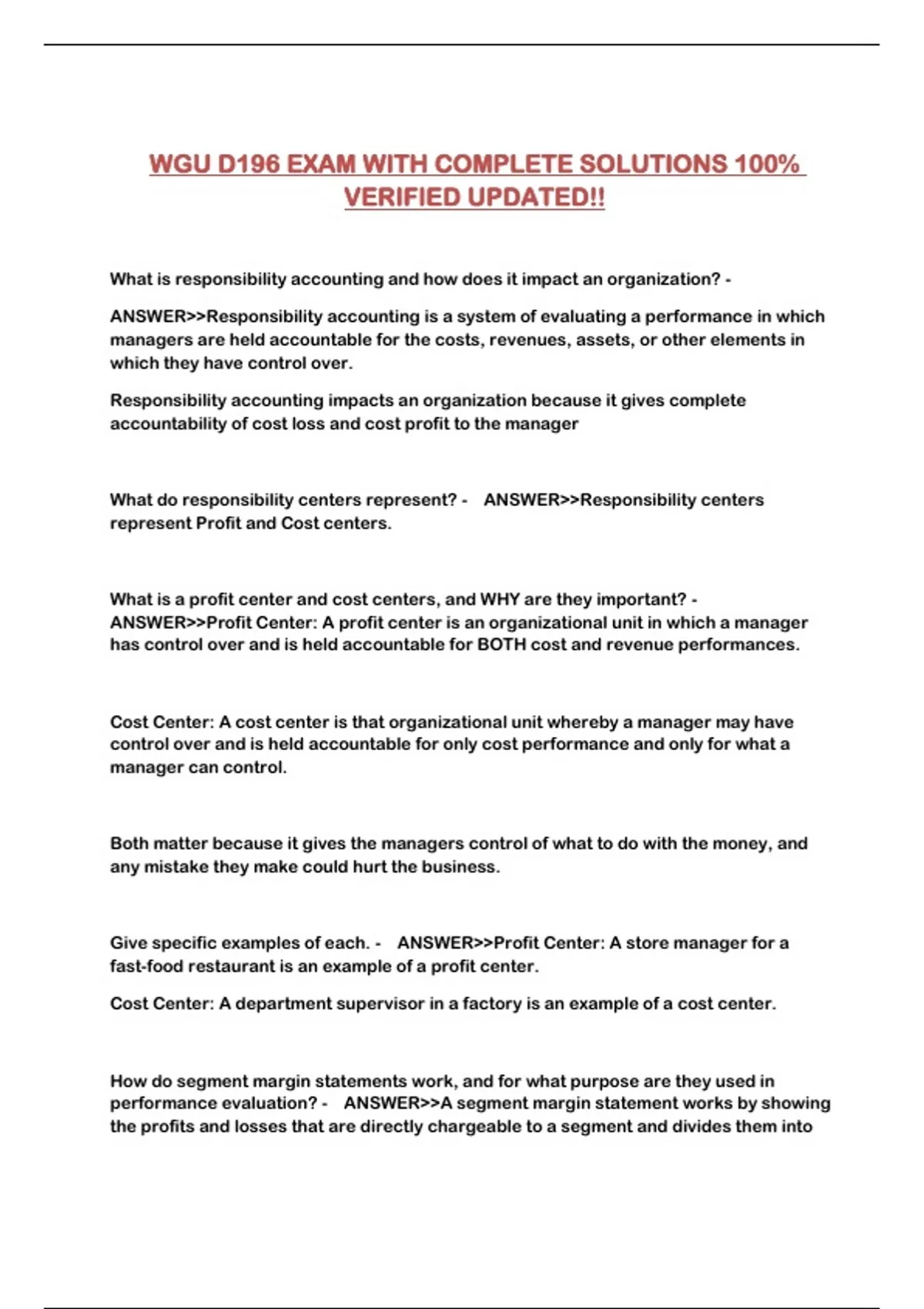WGU D196 EXAM WITH COMPLETE SOLUTIONS 100% VERIFIED UPDATED!!
