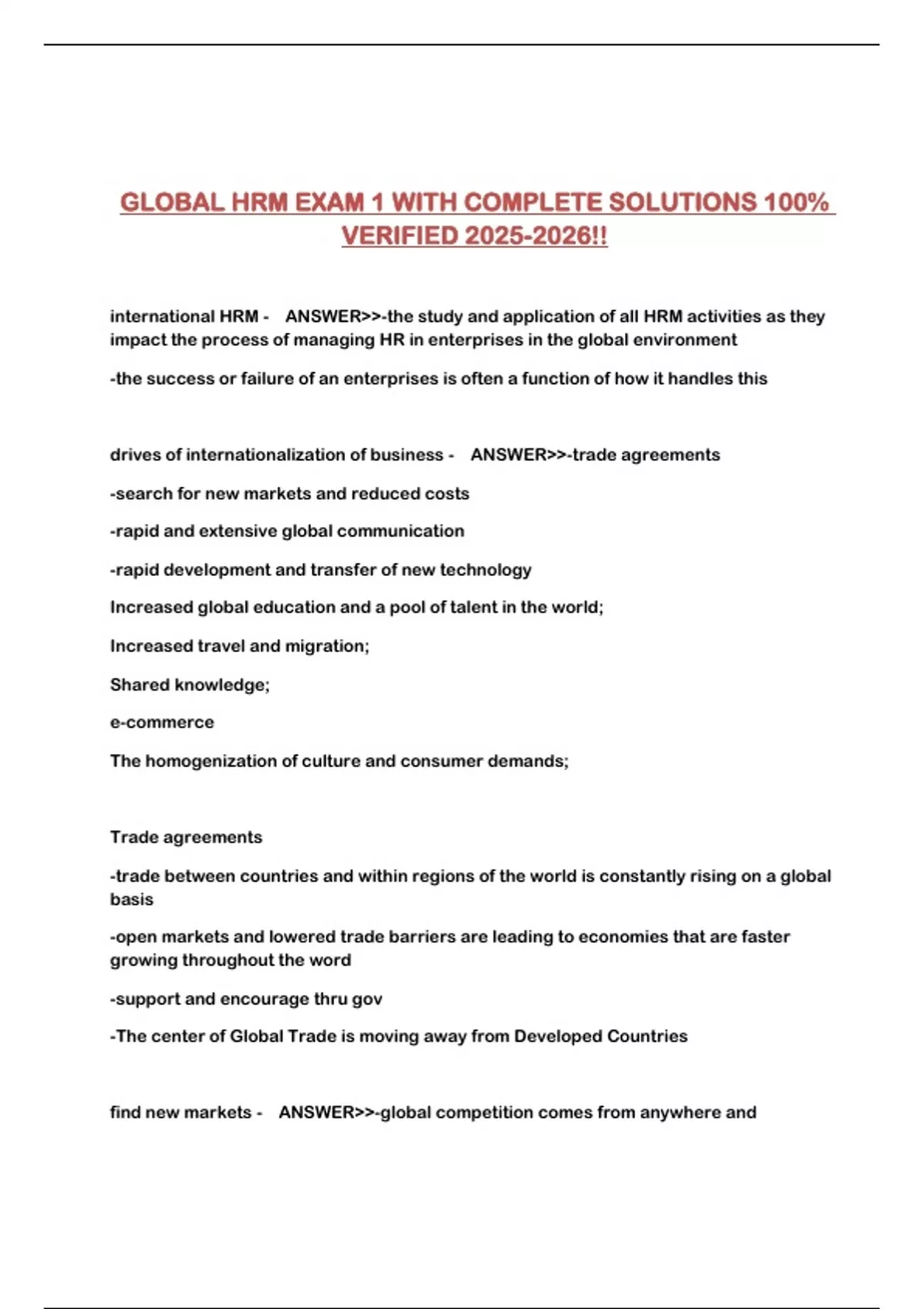 GLOBAL HRM EXAM 1 WITH COMPLETE SOLUTIONS 100%