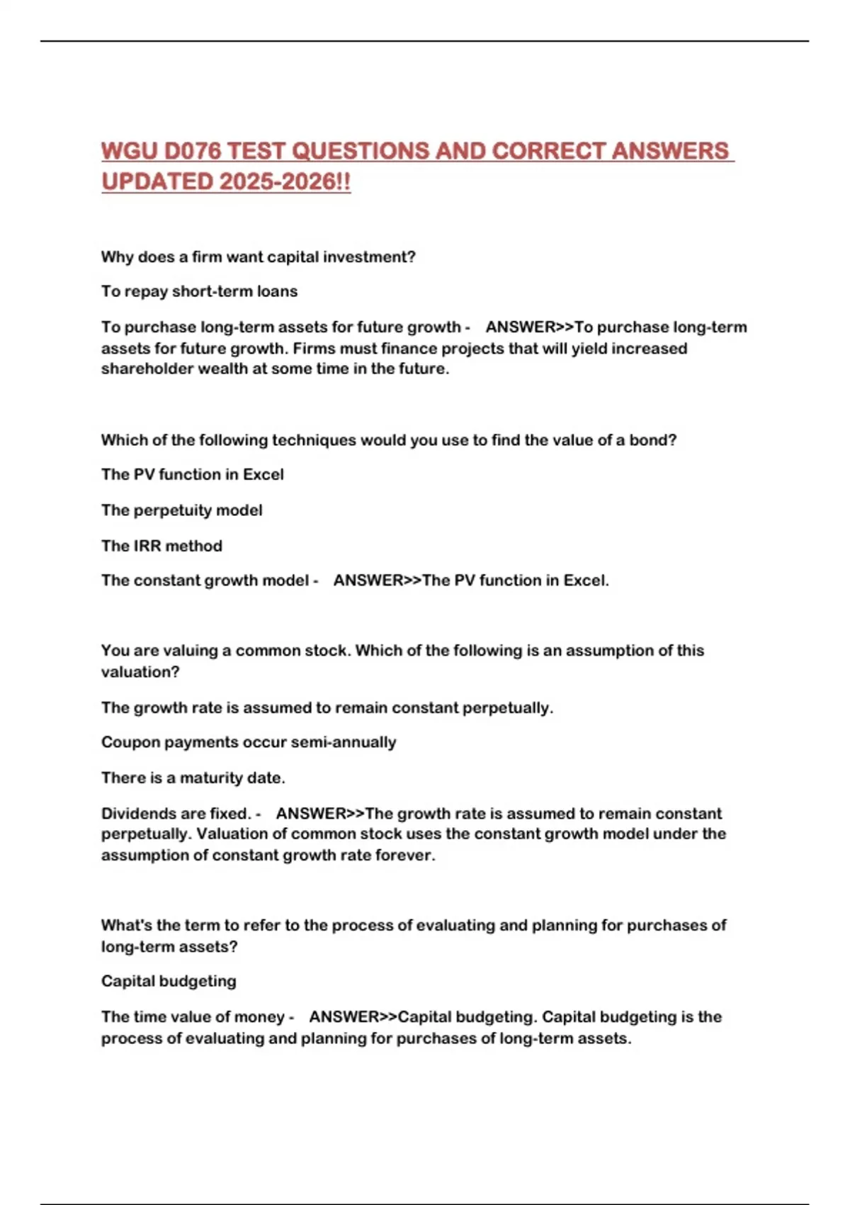 WGU D076 TEST QUESTIONS AND CORRECT ANSWERS UPDATED !!...