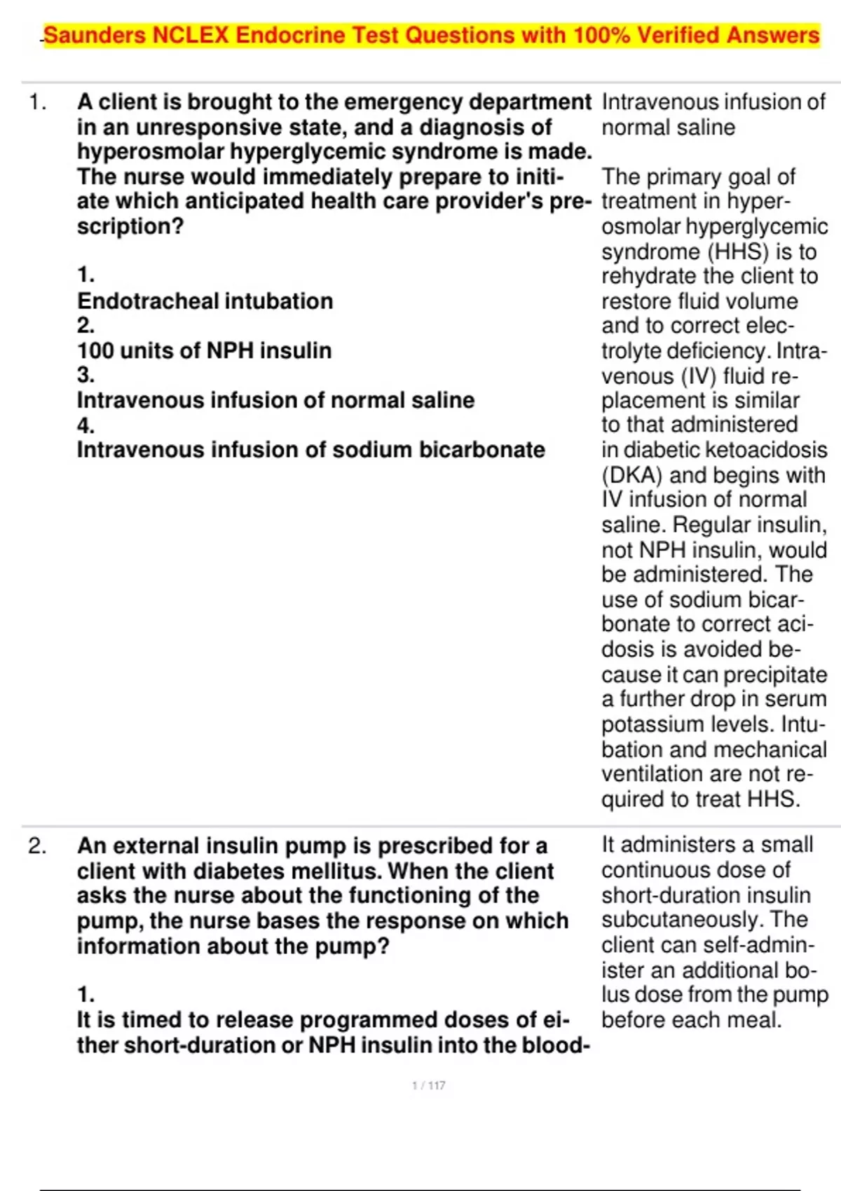 , Saunders NCLEX Endocrine Test Questions with 100% Verified Answers