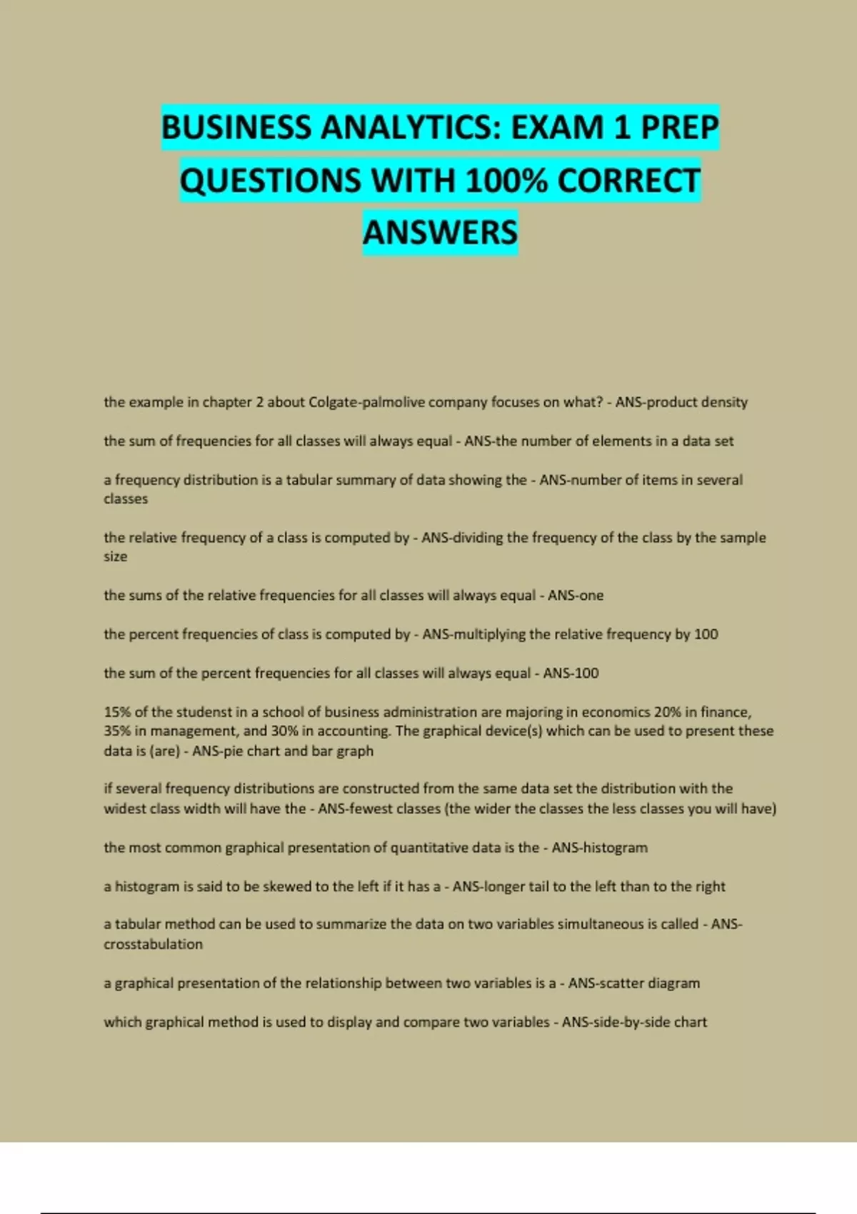 BUSINESS ANALYTICS EXAM 1 PREP QUESTIONS WITH 100% CORRECT ANSWERS; GRADED A+