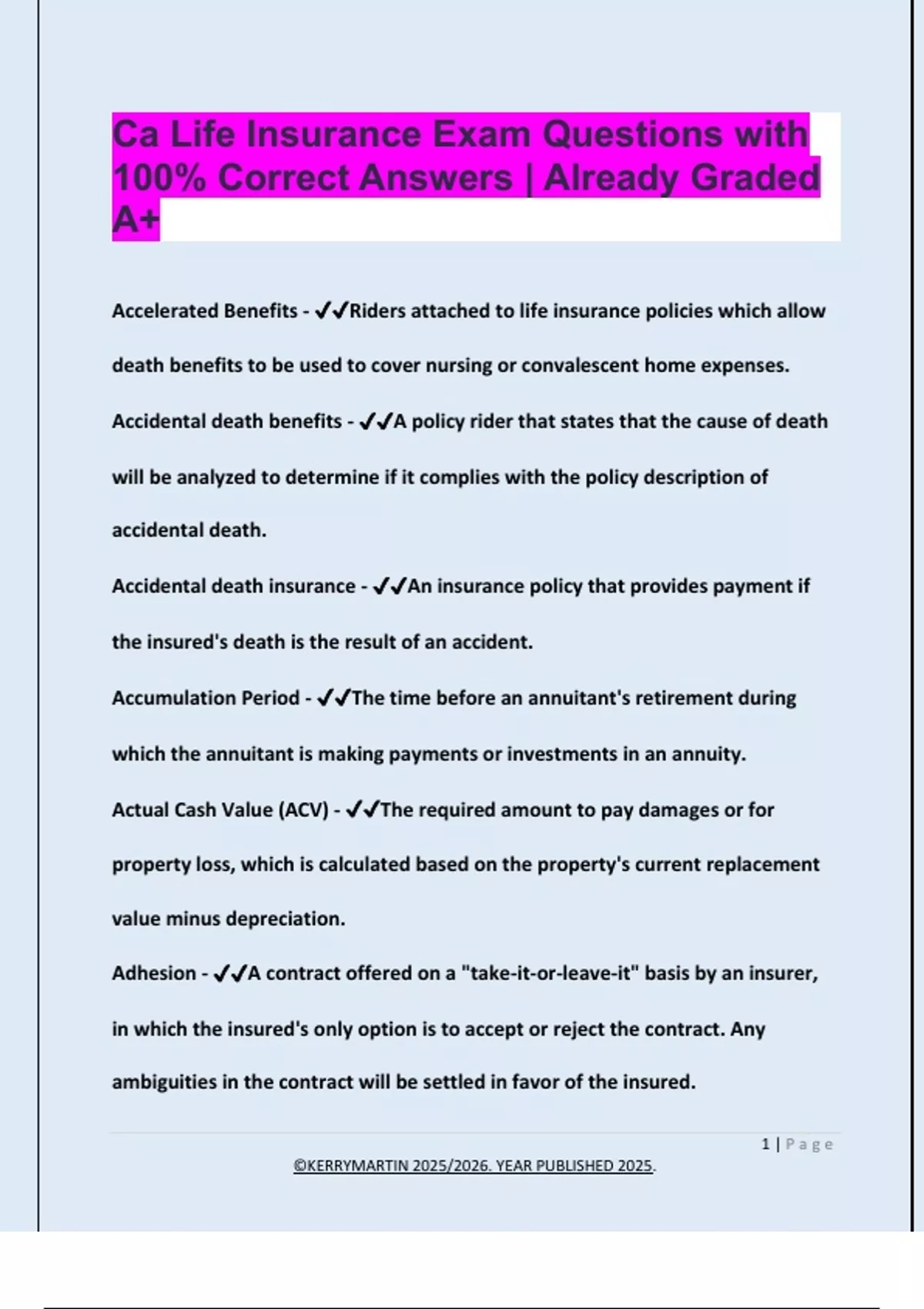 Accidental death insurance - ✔✔An insurance policy that provides payment if