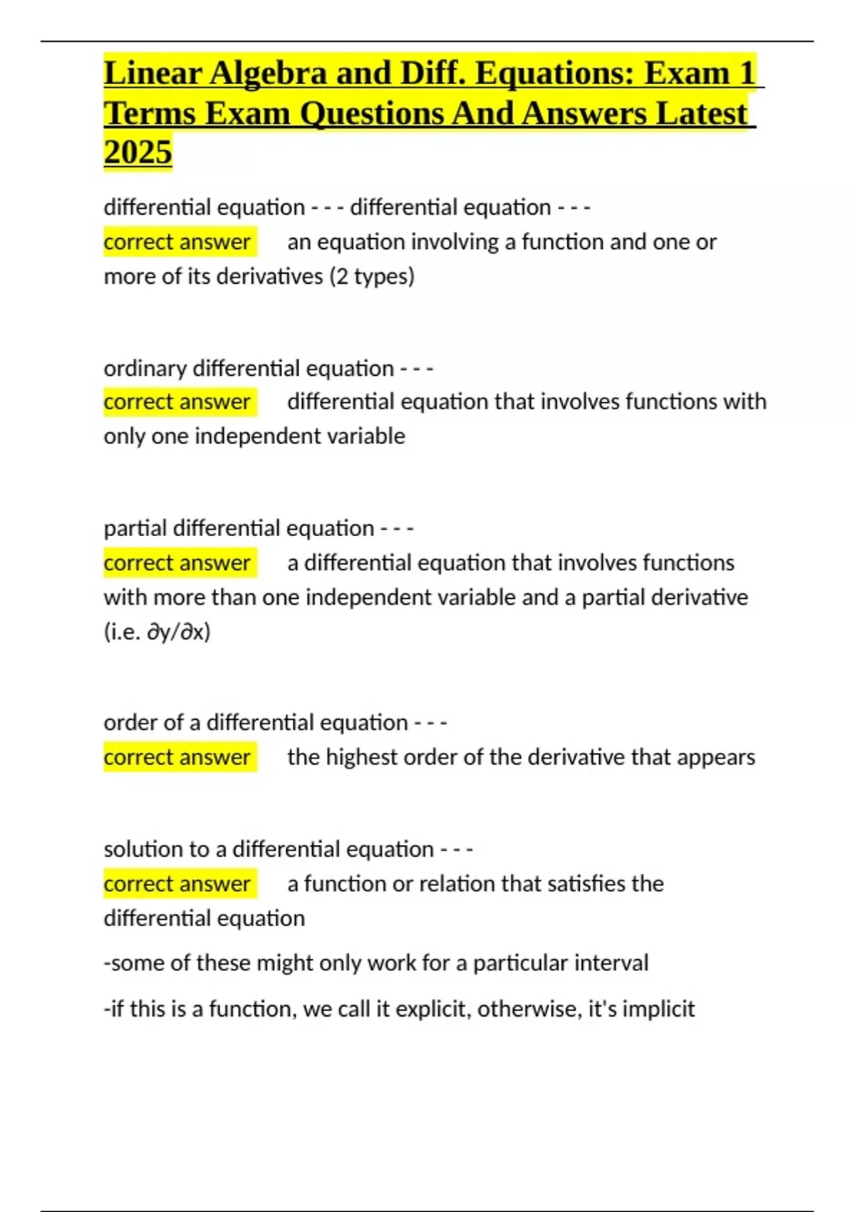 correct answer ✅the highest order of the derivative that appears