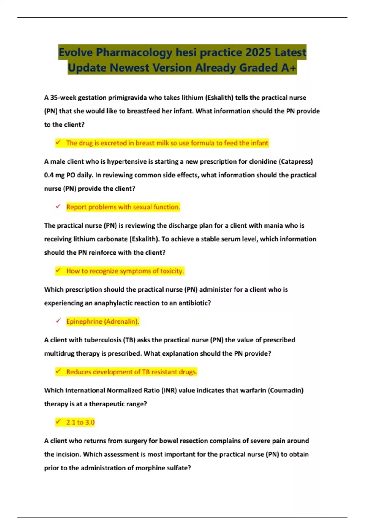 Which prescription should the practical nurse (PN) administer for a client who is
