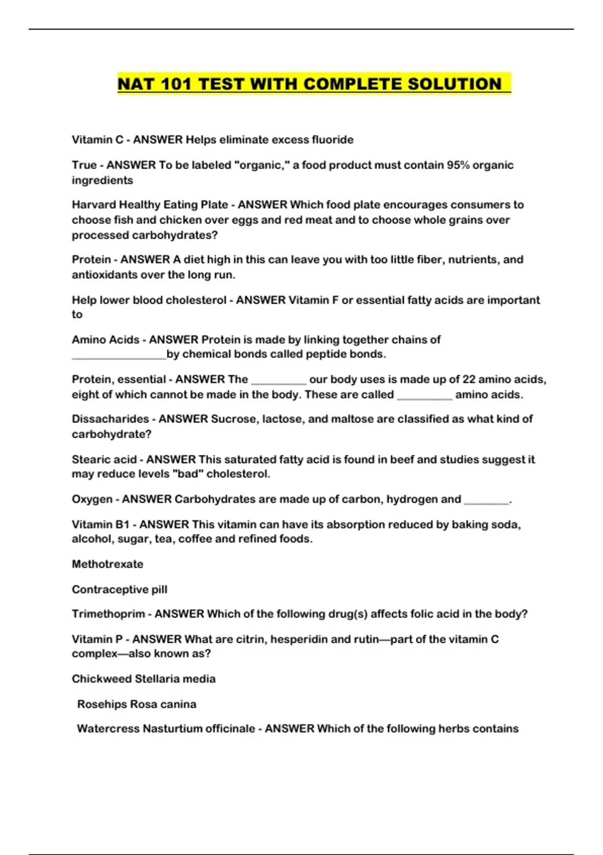 NAT 101 TEST WITH COMPLETE SOLUTION ...