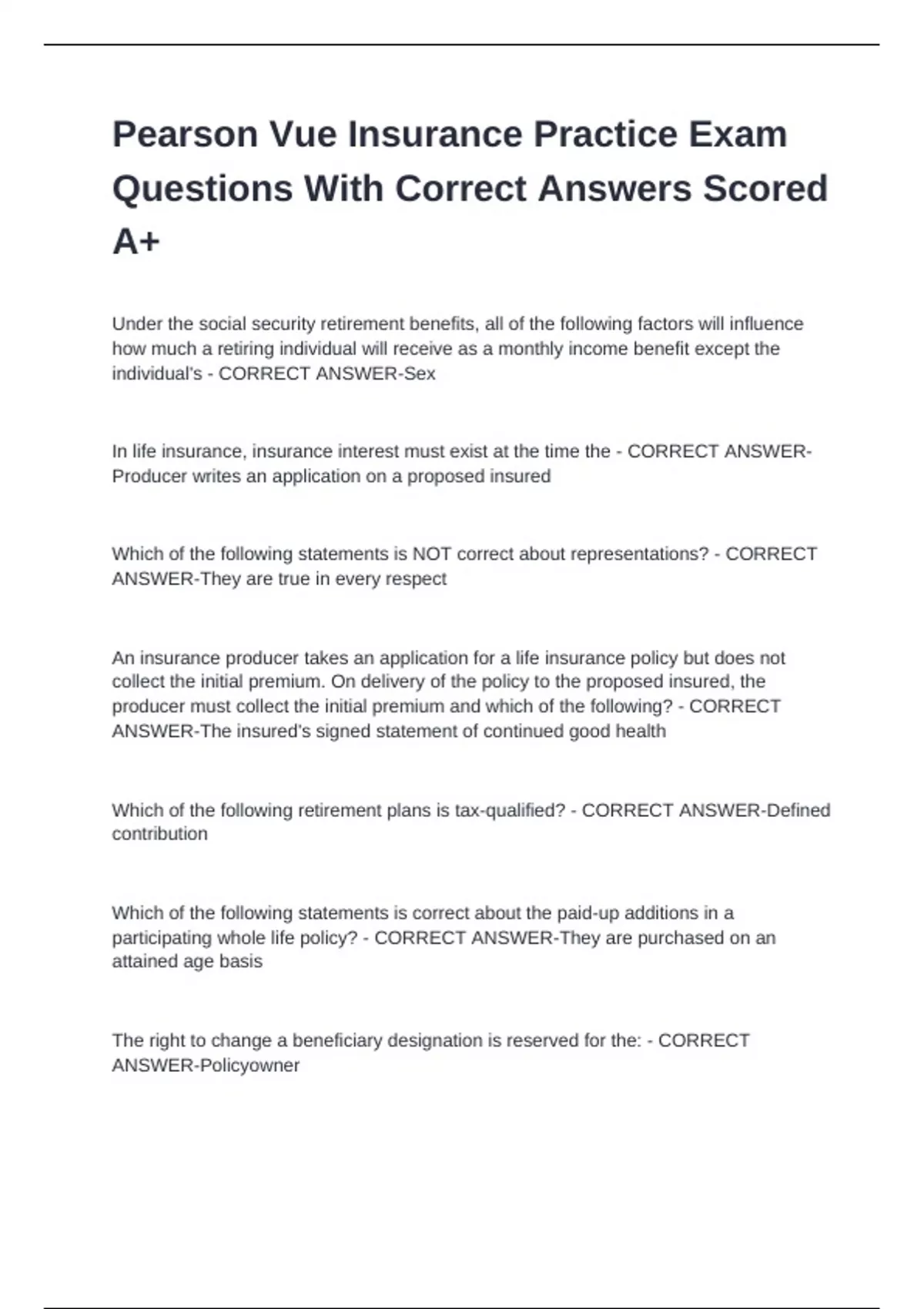 will be paid to a beneficiary on the death of the insured? - CORRECT ANSWER-