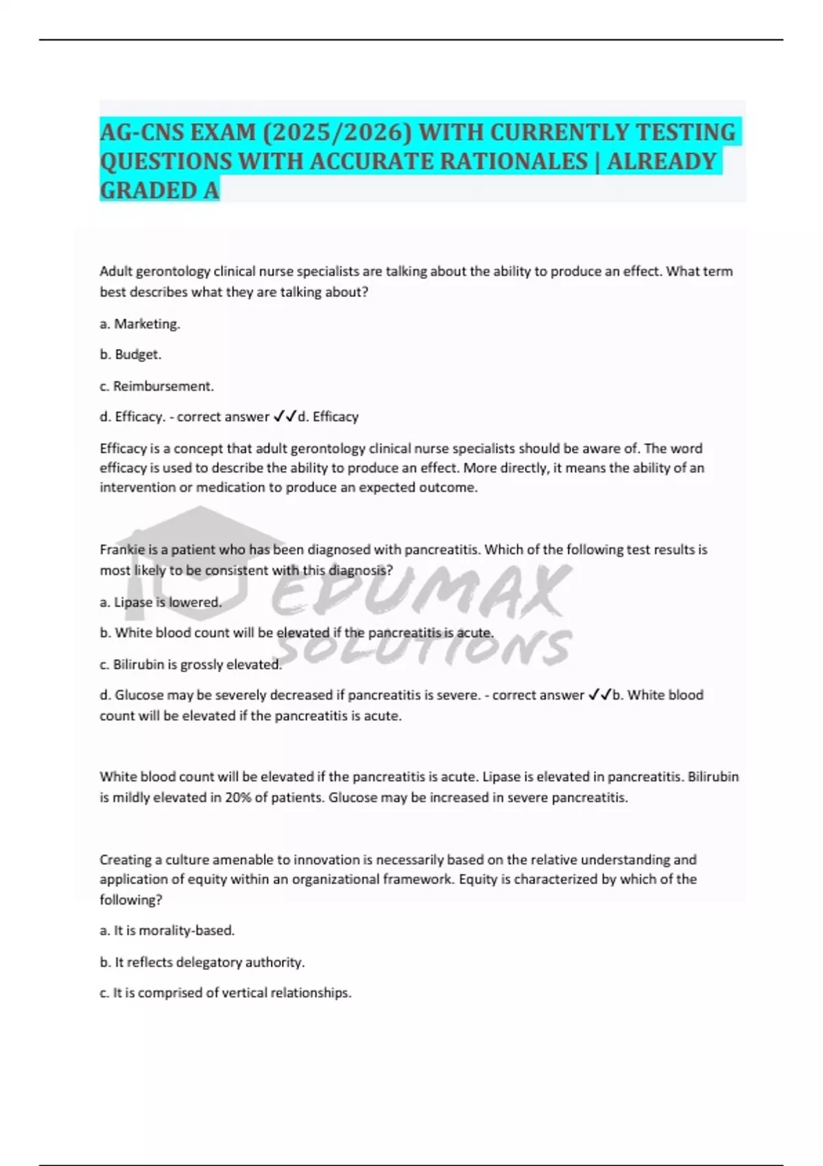 QUESTIONS WITH ACCURATE RATIONALES | ALREADY