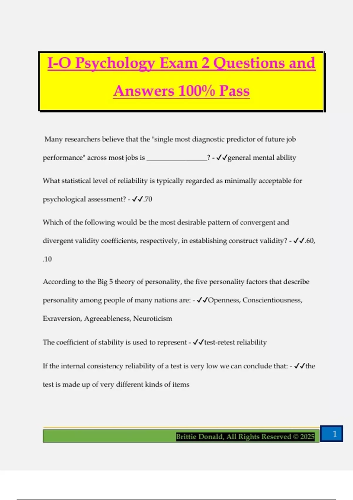 performance" across most jobs is _________________? - ✔✔general mental ability