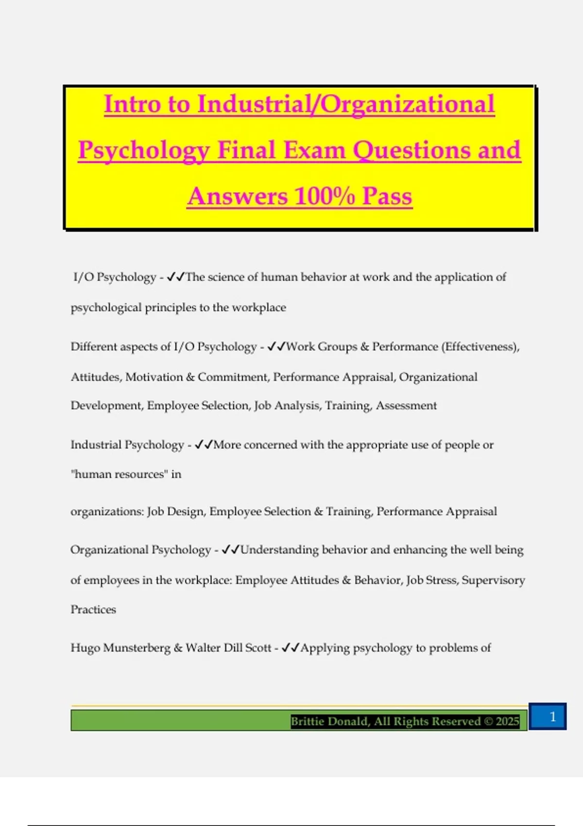 I/O Psychology - ✔✔The science of human behavior at work and the application of