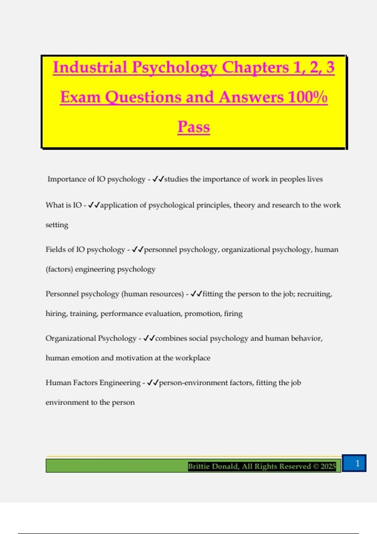 Organizational Psychology - ✔✔combines social psychology and human behavior,