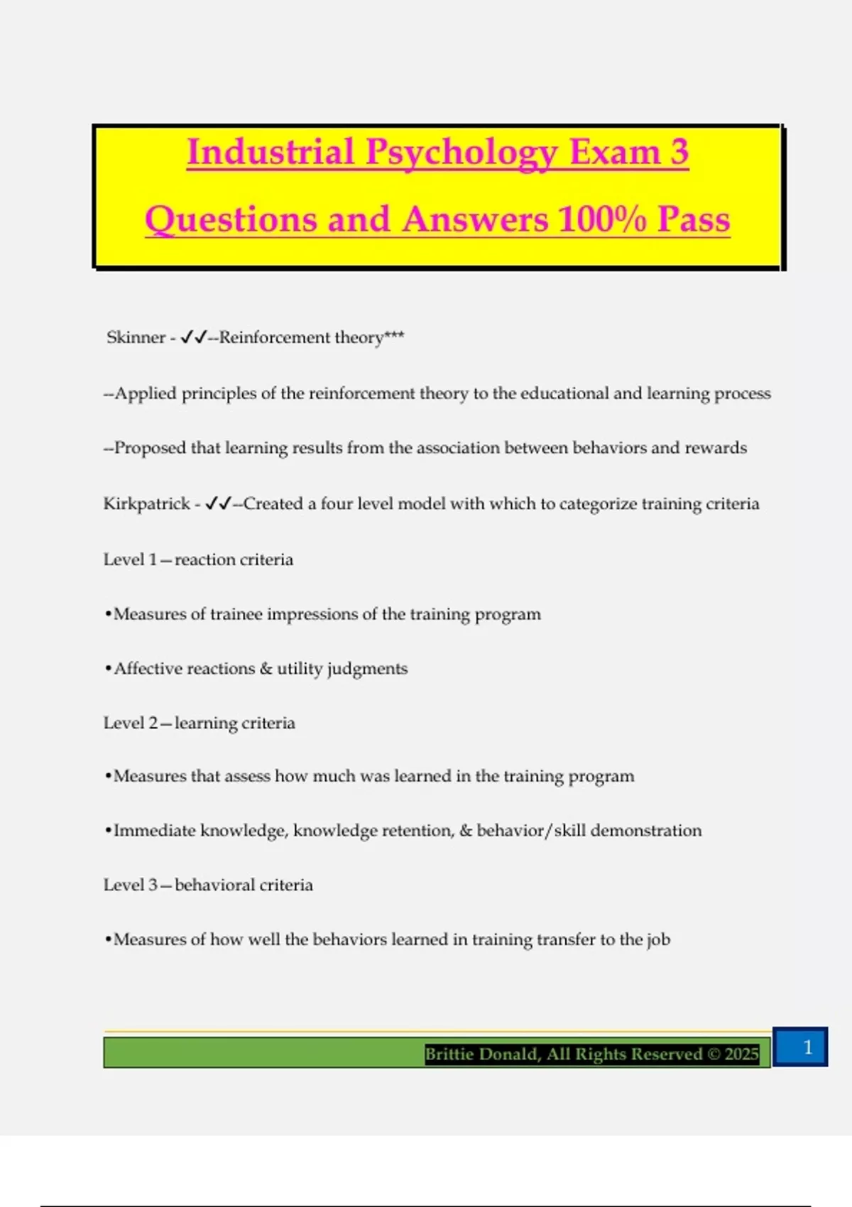 Kirkpatrick - ✔✔--Created a four level model with which to categorize training criteria