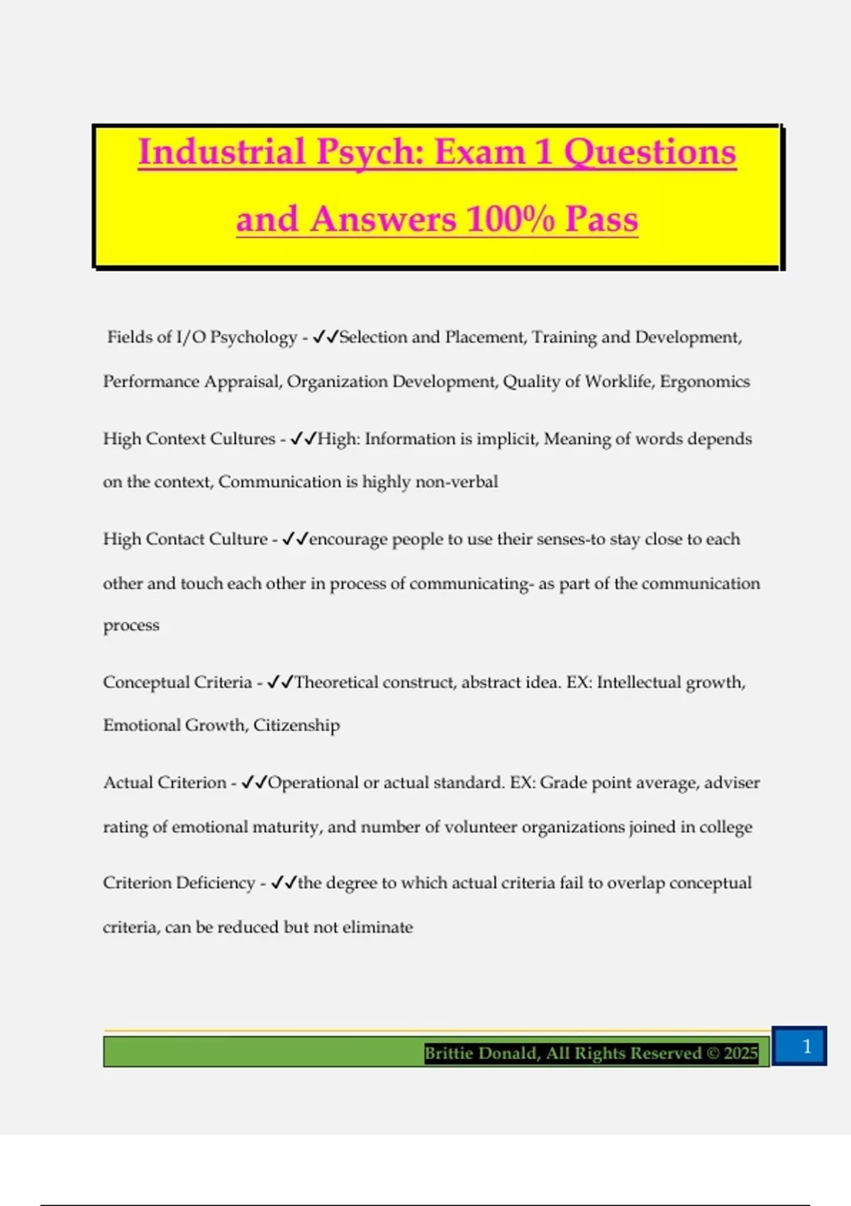 Fields of I/O Psychology - ✔✔Selection and Placement, Training and Development,