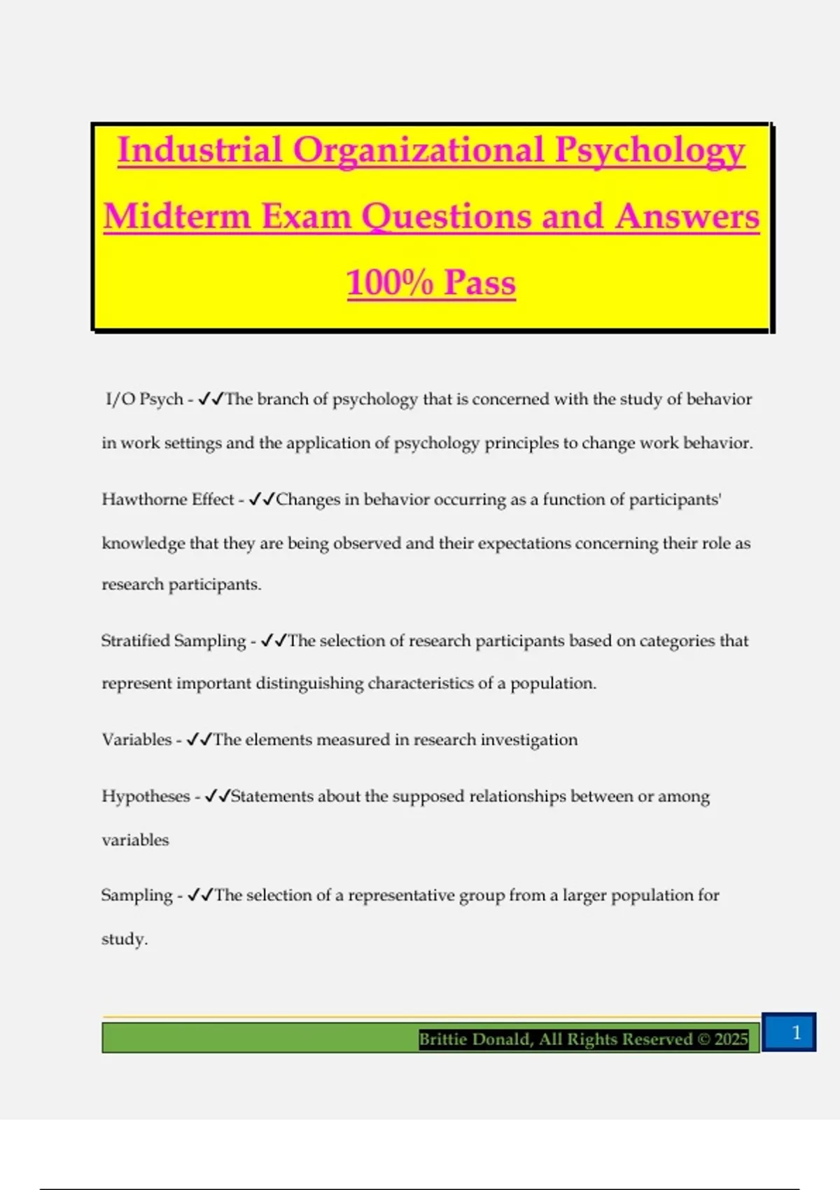I/O Psych - ✔✔The branch of psychology that is concerned with the study of behavior
