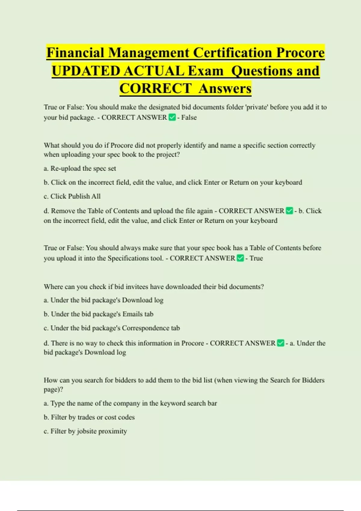 d. There is no way to check this information in Procore - CORRECT ANSWER - a. Under the