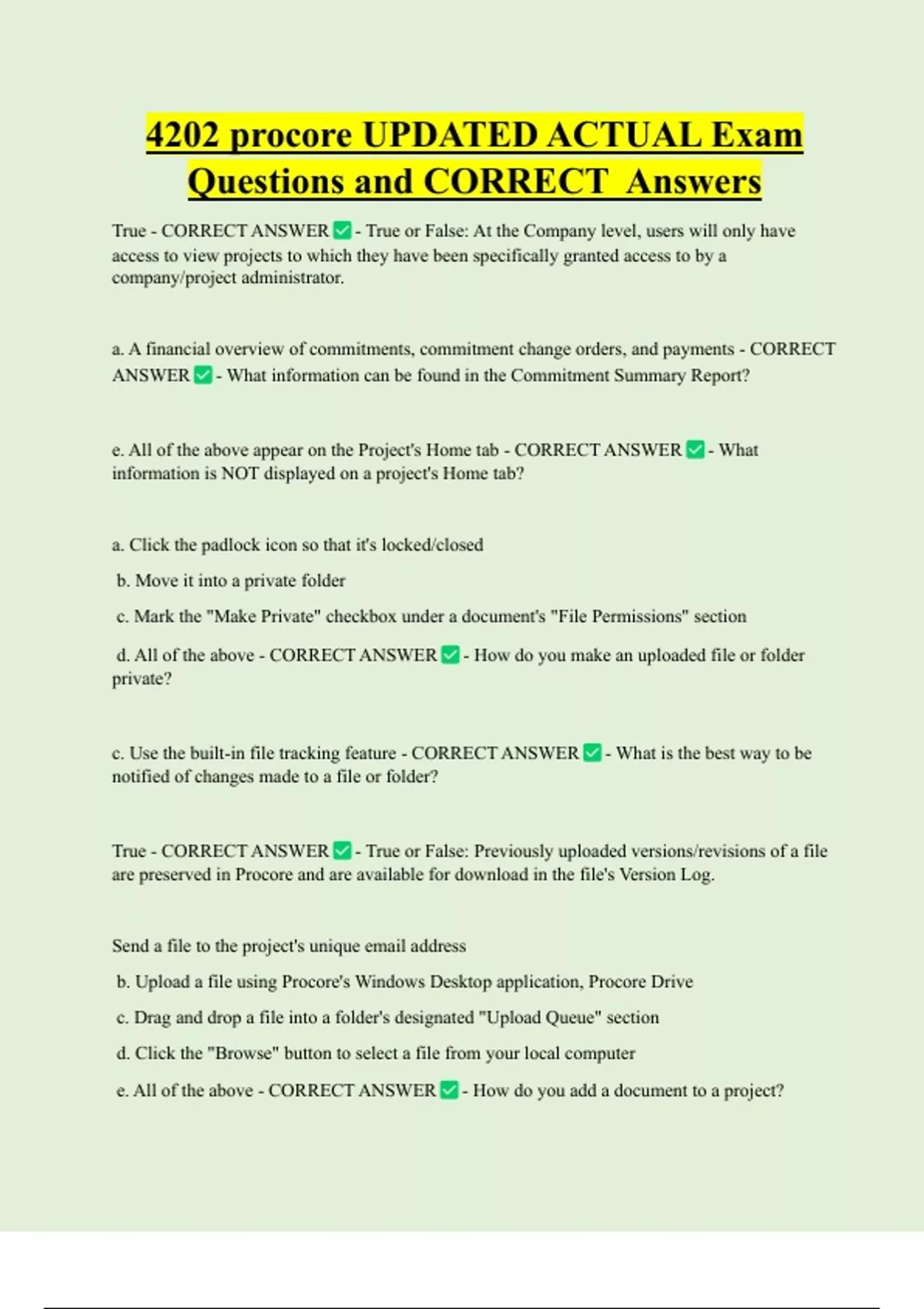 Questions and CORRECT Answers