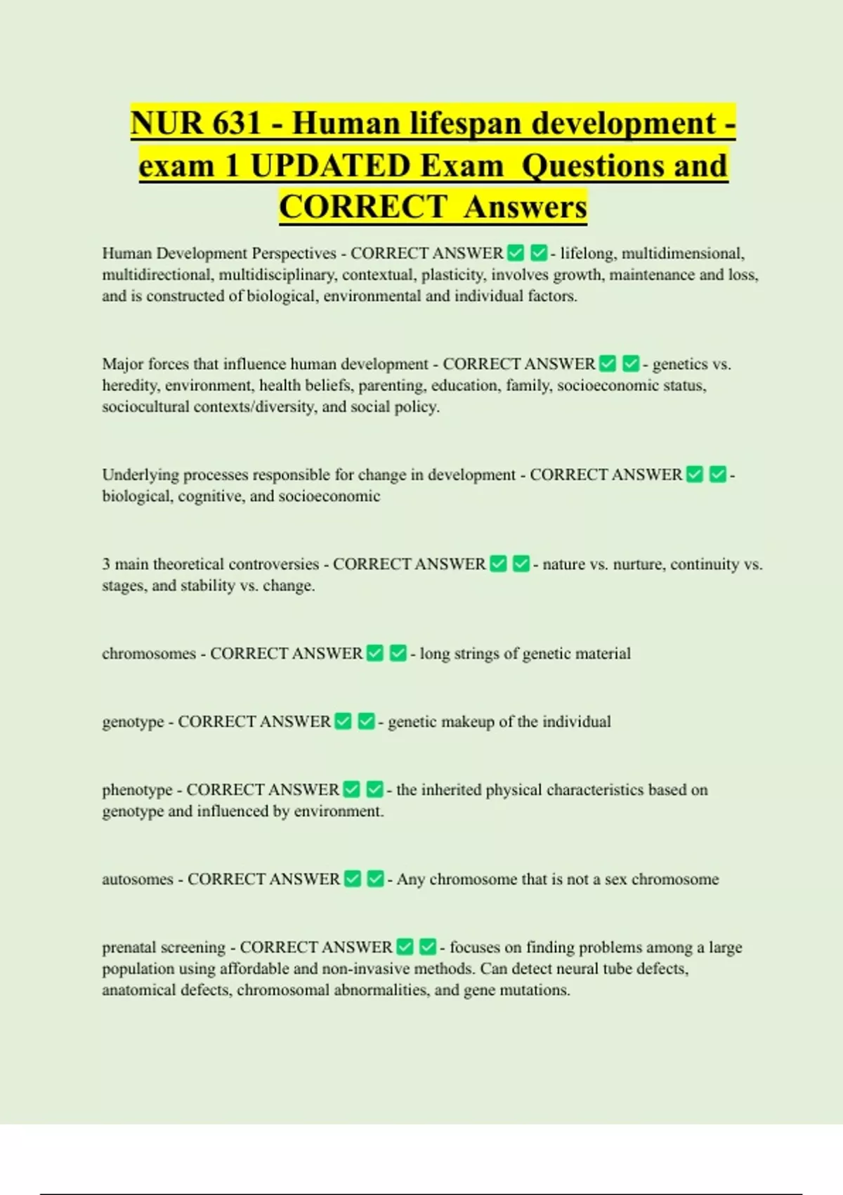 Major forces that influence human development - CORRECT ANSWER - genetics vs.