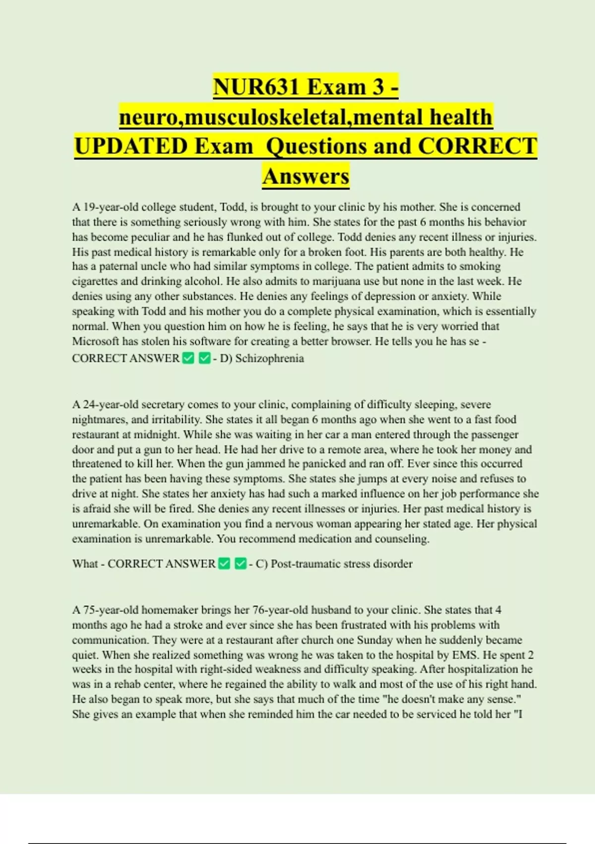 What - CORRECT ANSWER - C) Post-traumatic stress disorder