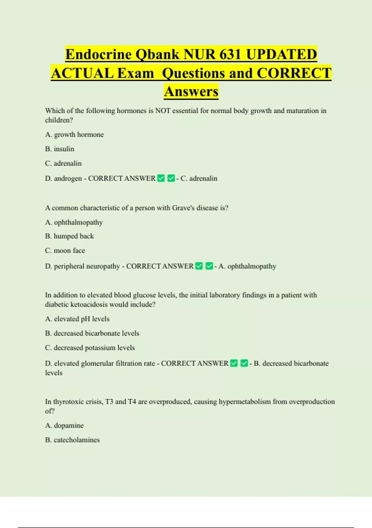 D. androgen - CORRECT ANSWER - C. adrenalin