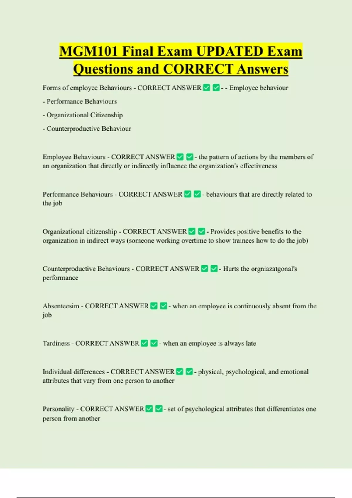 Forms of employee Behaviours - CORRECT ANSWER - - Employee behaviour