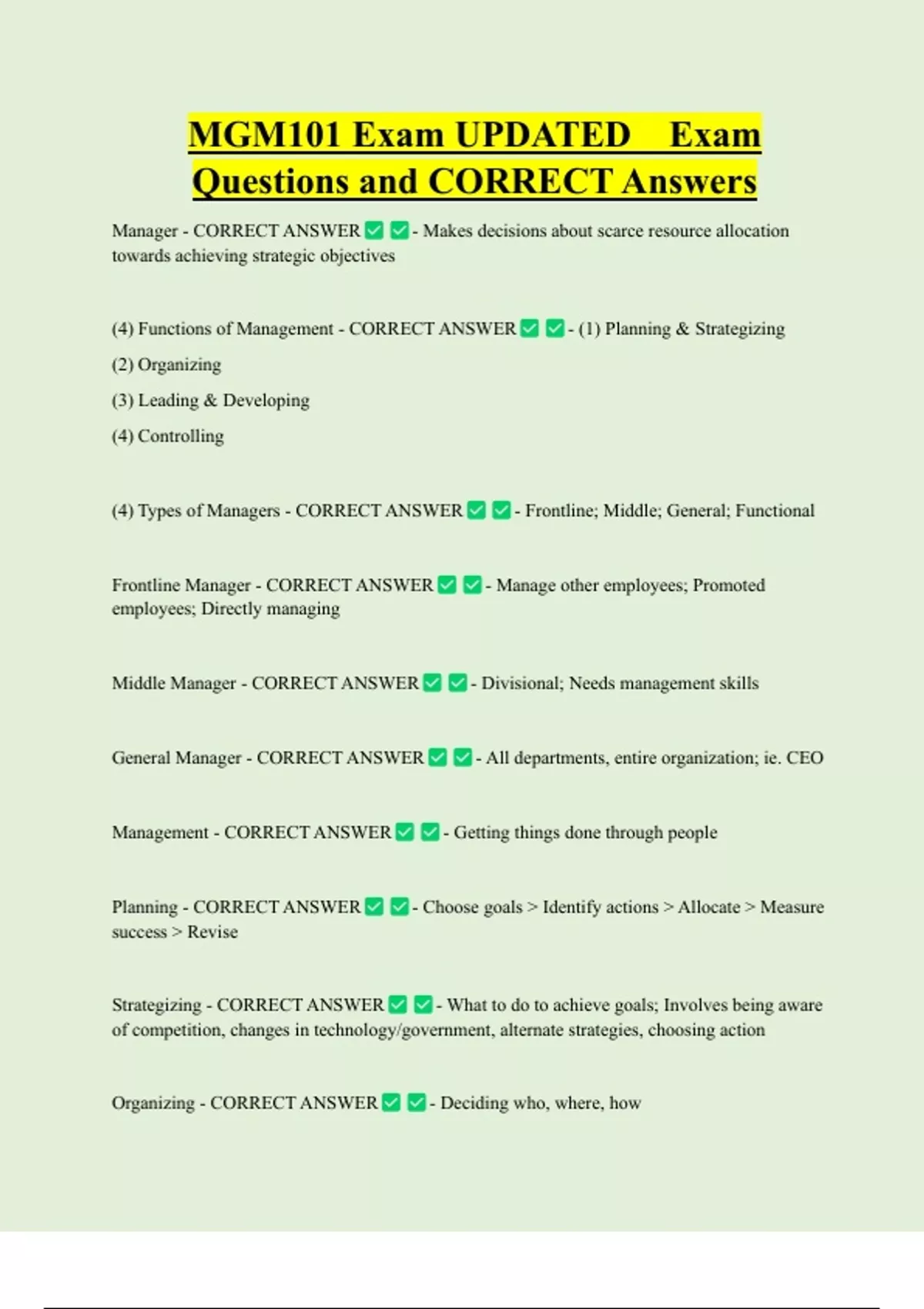 Questions and CORRECT Answers