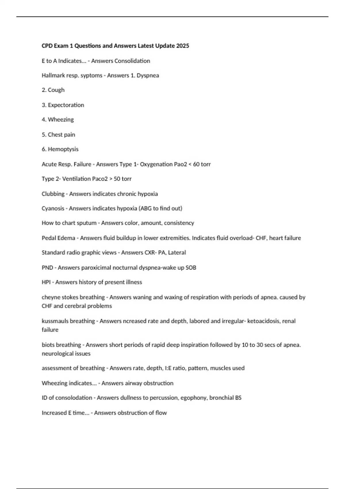 Hallmark resp. syptoms - Answers 1. Dyspnea