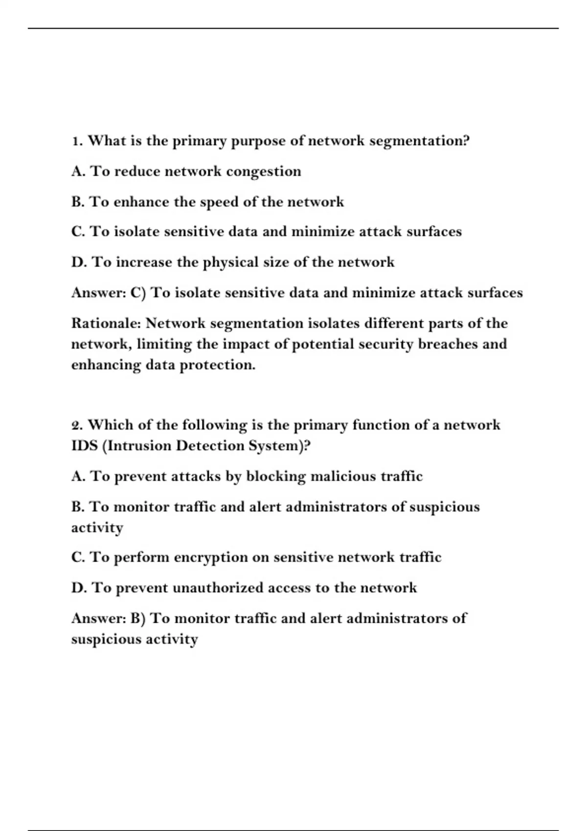 1. What is the primary purpose of network segmentation?