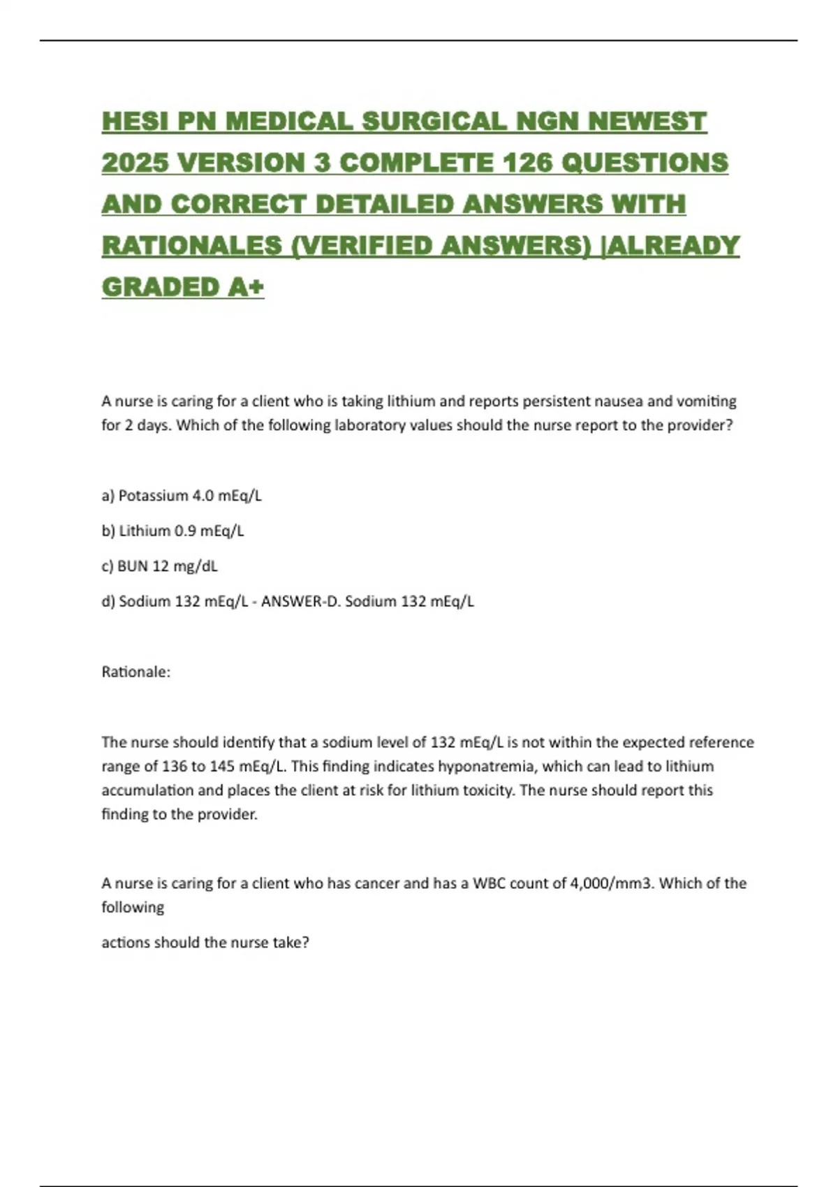 HESI PN MEDICAL SURGICAL NGN NEWEST