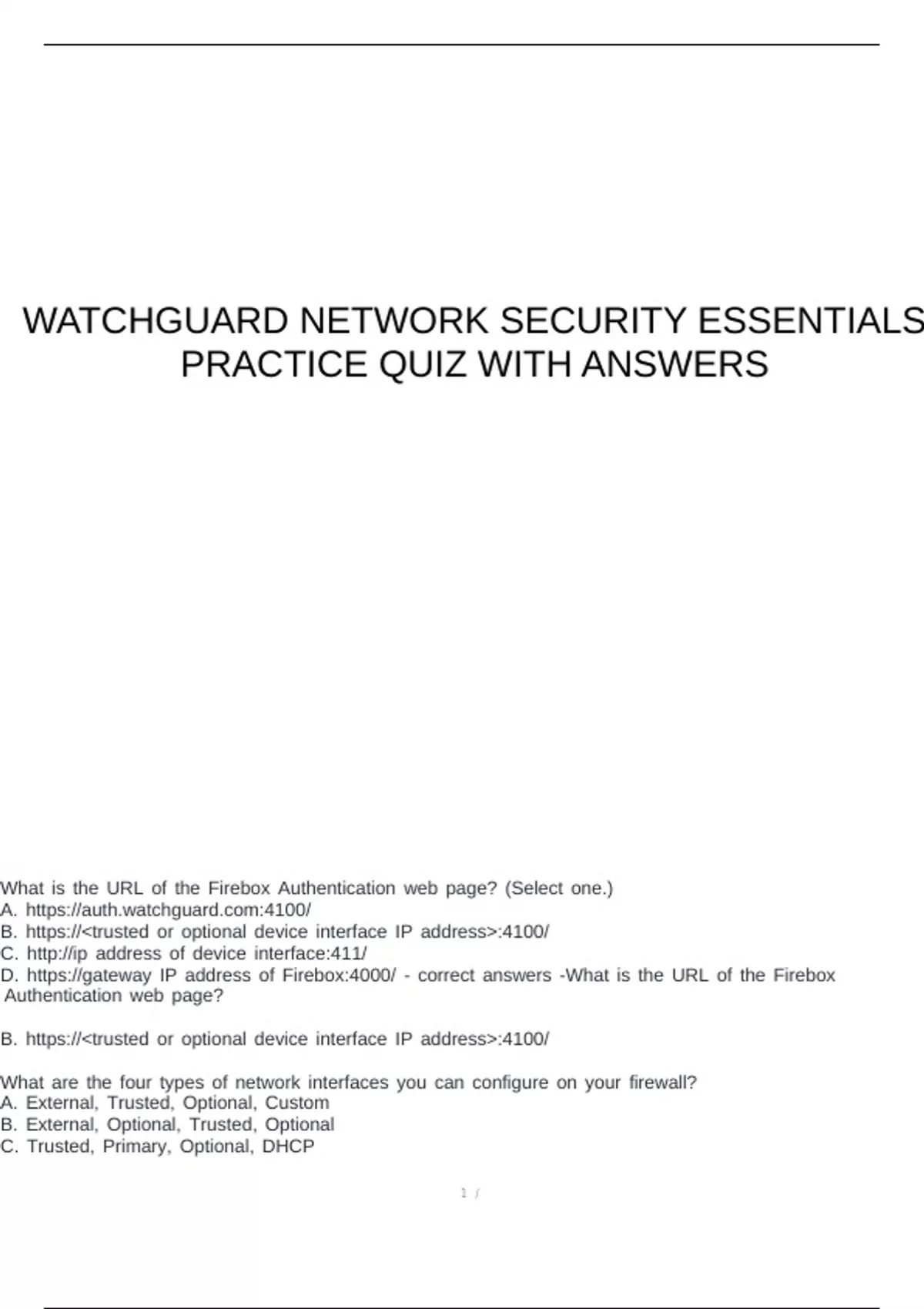 WatchGuard Network Security Essentials Practice Quiz