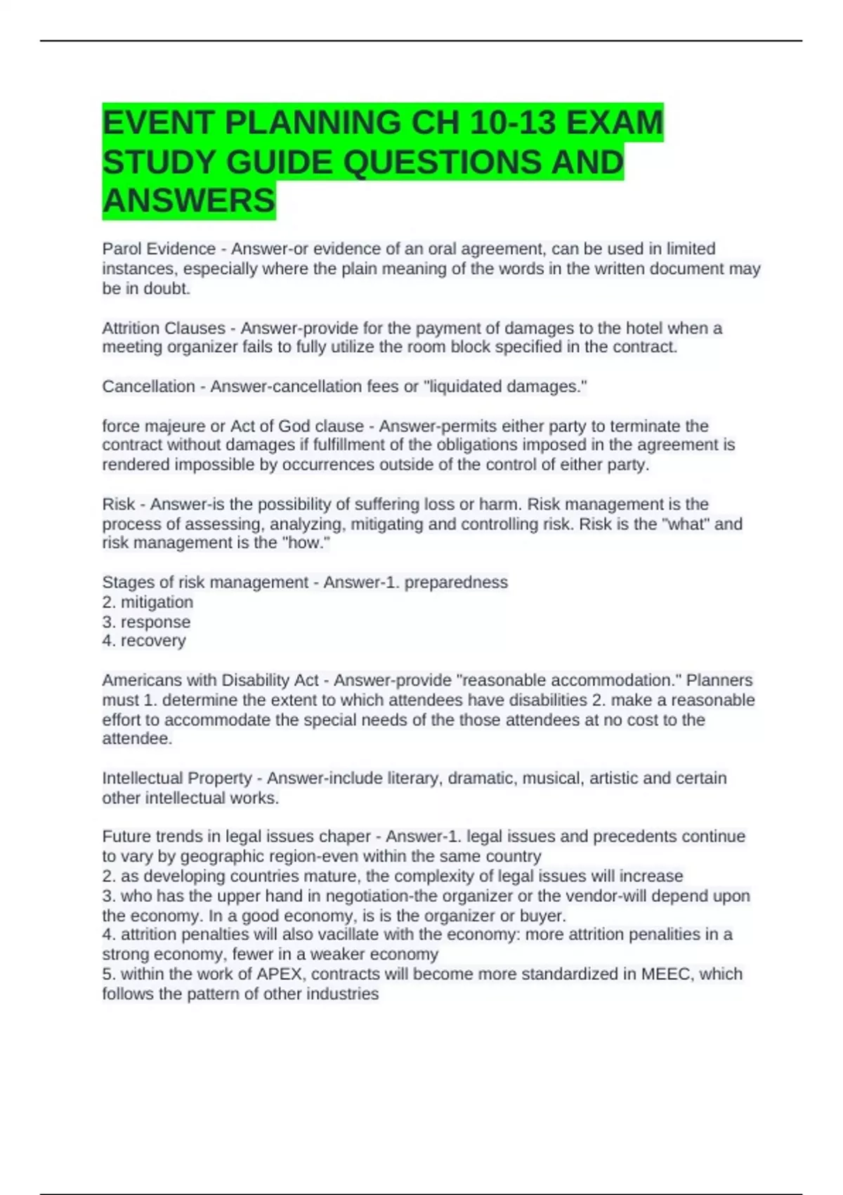 Attrition Clauses - Answer-provide for the payment of damages to the hotel when a