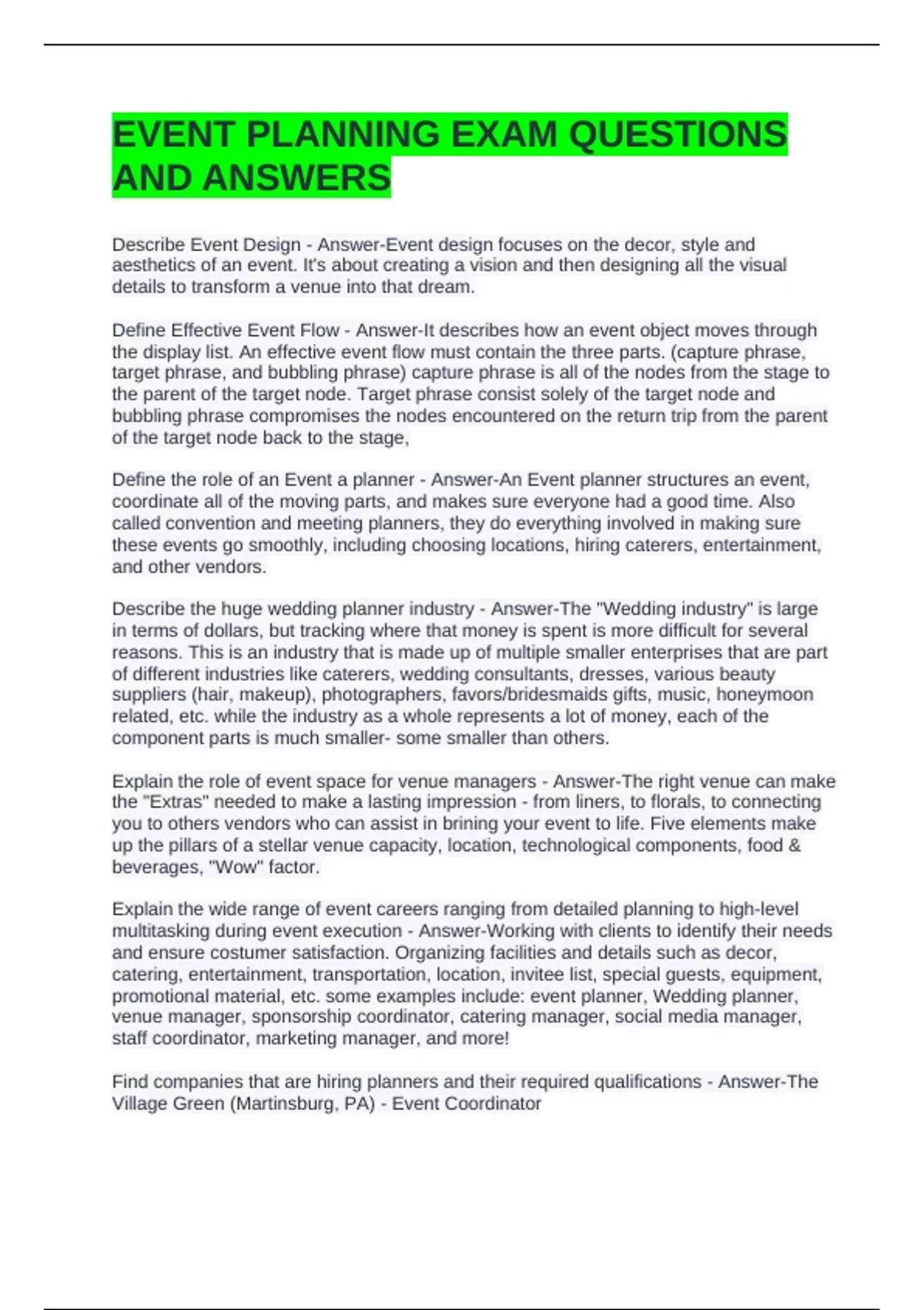 EVENT PLANNING EXAM QUESTIONS AND ANSWERS