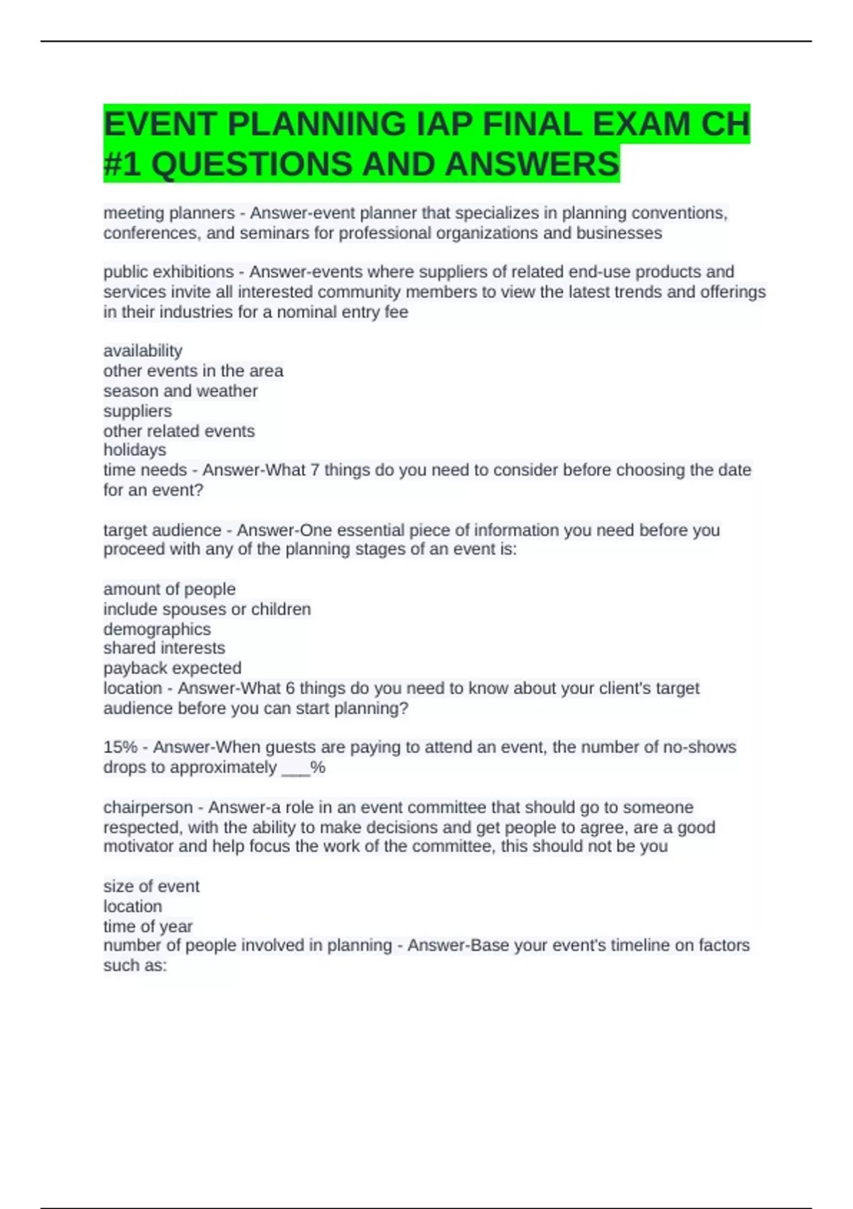 EVENT PLANNING IAP FINAL EXAM CH