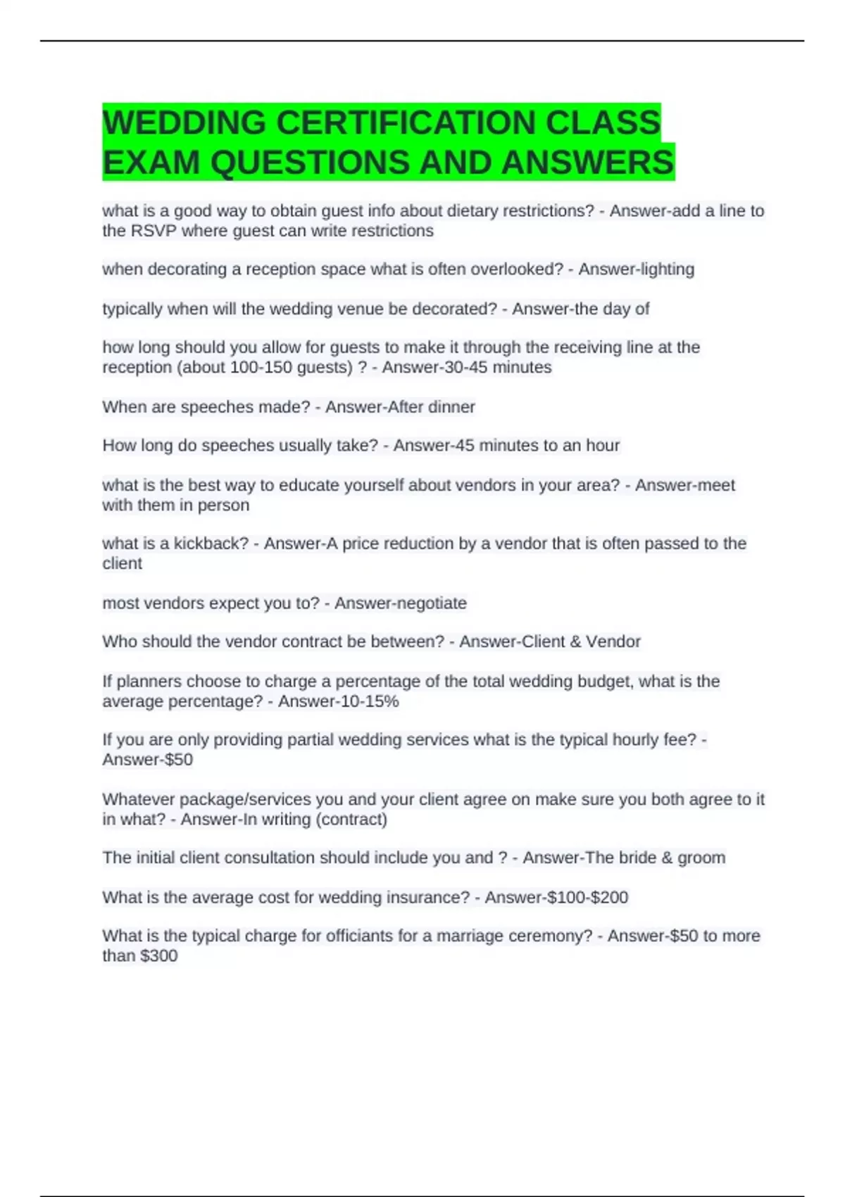 WEDDING CERTIFICATION CLASS