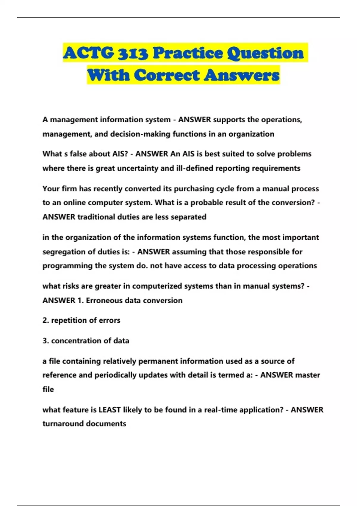 ACTG 313 Practice Question With Correct Answers...