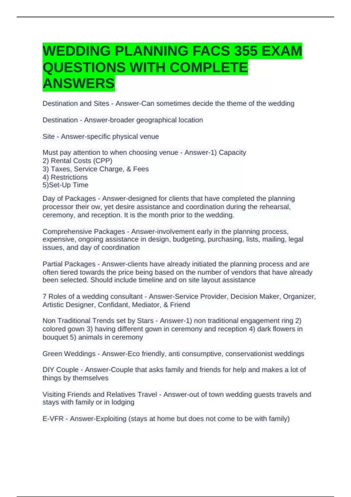 Destination and Sites - Answer-Can sometimes decide the theme of the wedding