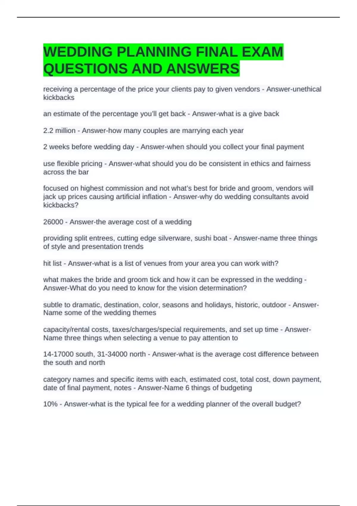 2 weeks before wedding day - Answer-when should you collect your final payment