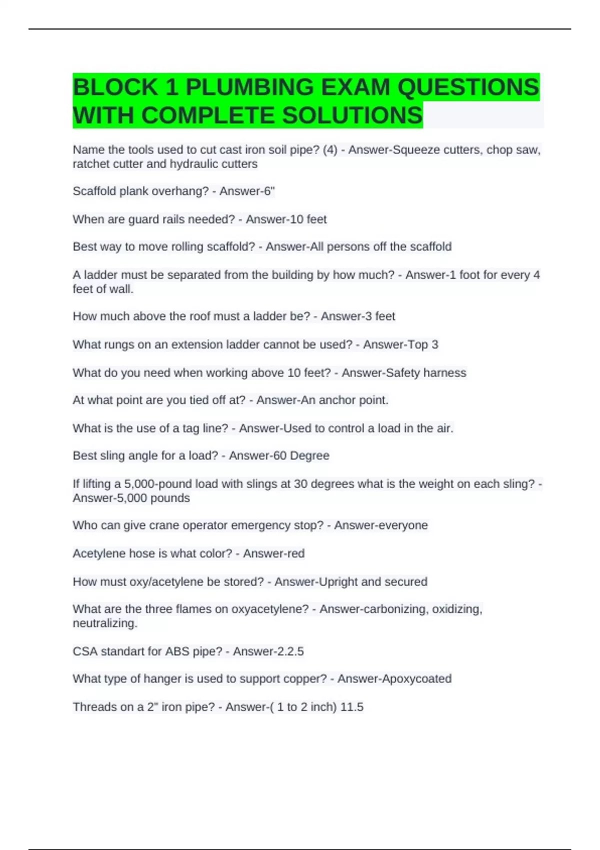 BLOCK 1 PLUMBING EXAM QUESTIONS