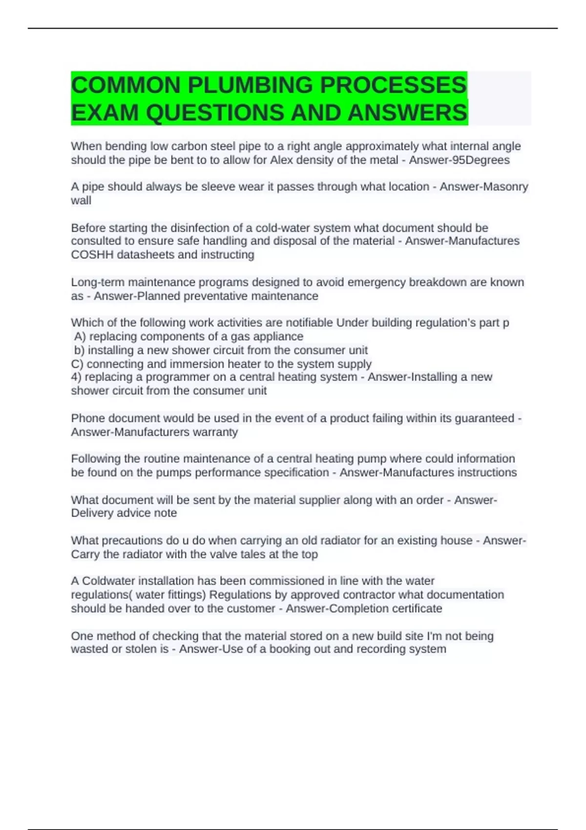 COMMON PLUMBING PROCESSES